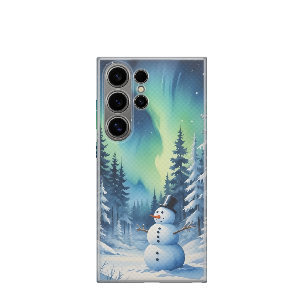 Samsung Galaxy S24 Ultra Gummi Hülle Nordlicht Schneemann - Türkis
