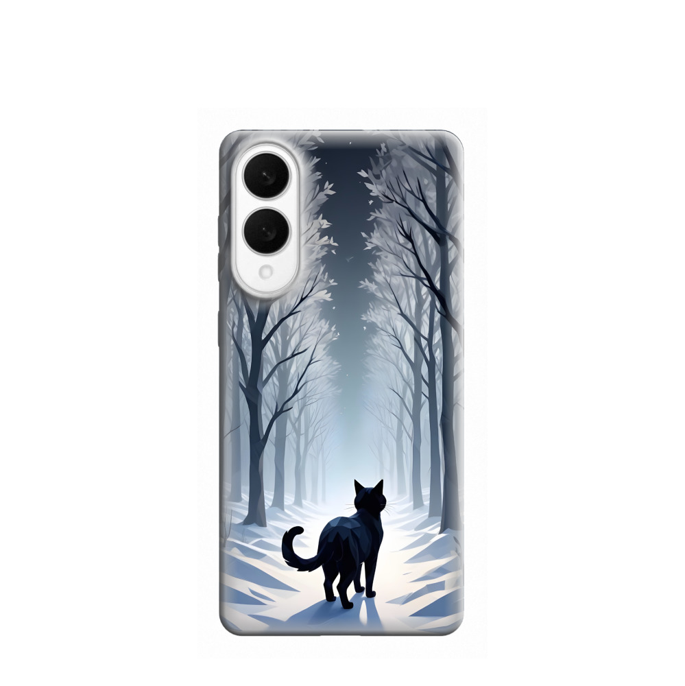 Samsung Galaxy S25 Edge Gummi Hülle Katze im Winterwald - Schwarz