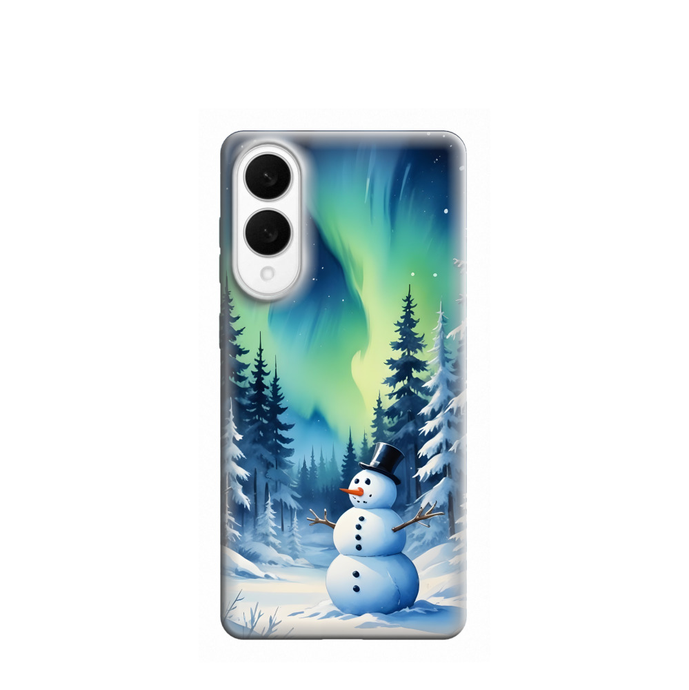 Samsung Galaxy S25 Edge Gummi Hülle Nordlicht Schneemann - Türkis