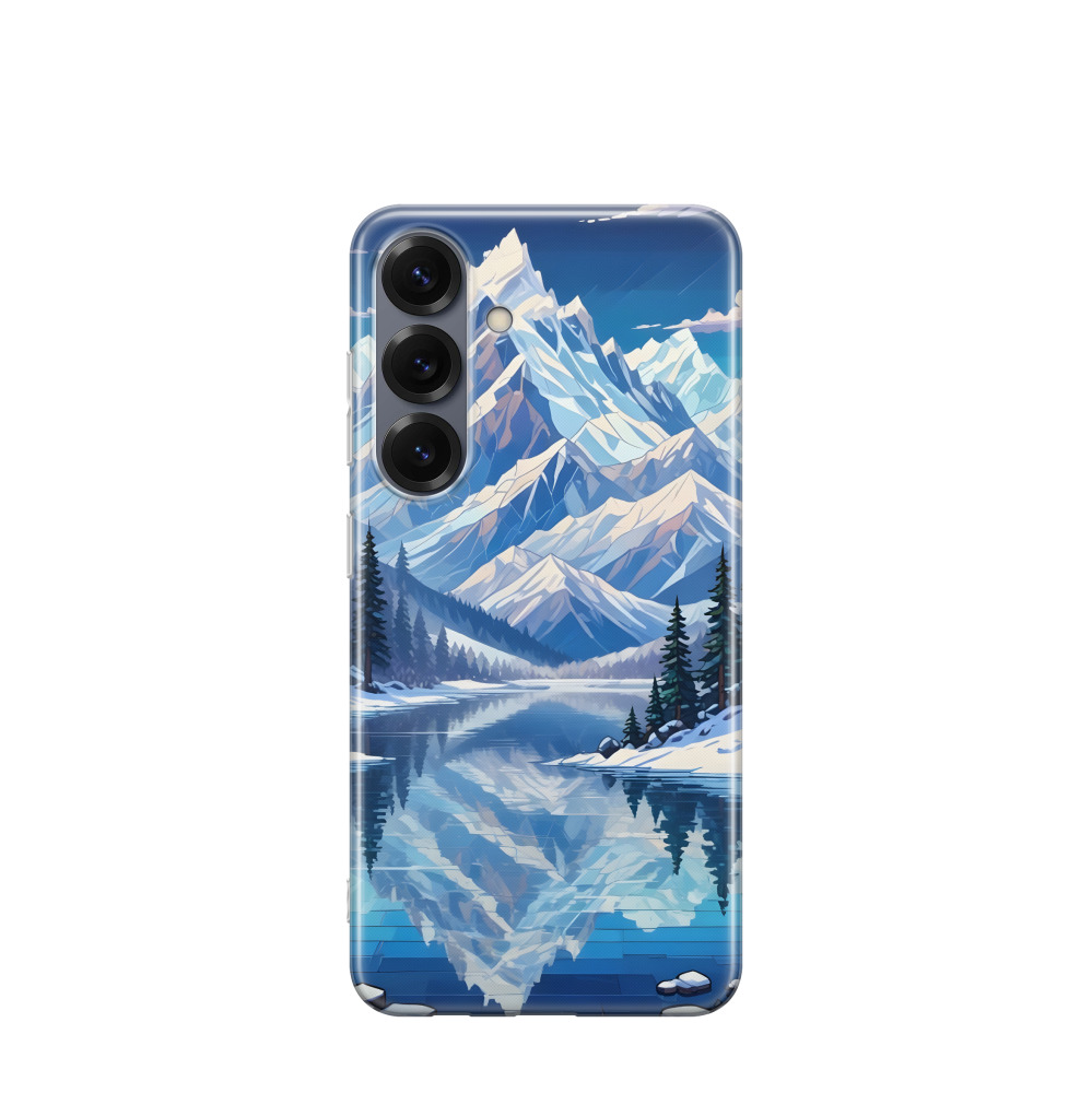 Samsung Galaxy S25 Gummi Hülle Bergzauber im Eissee - Blau