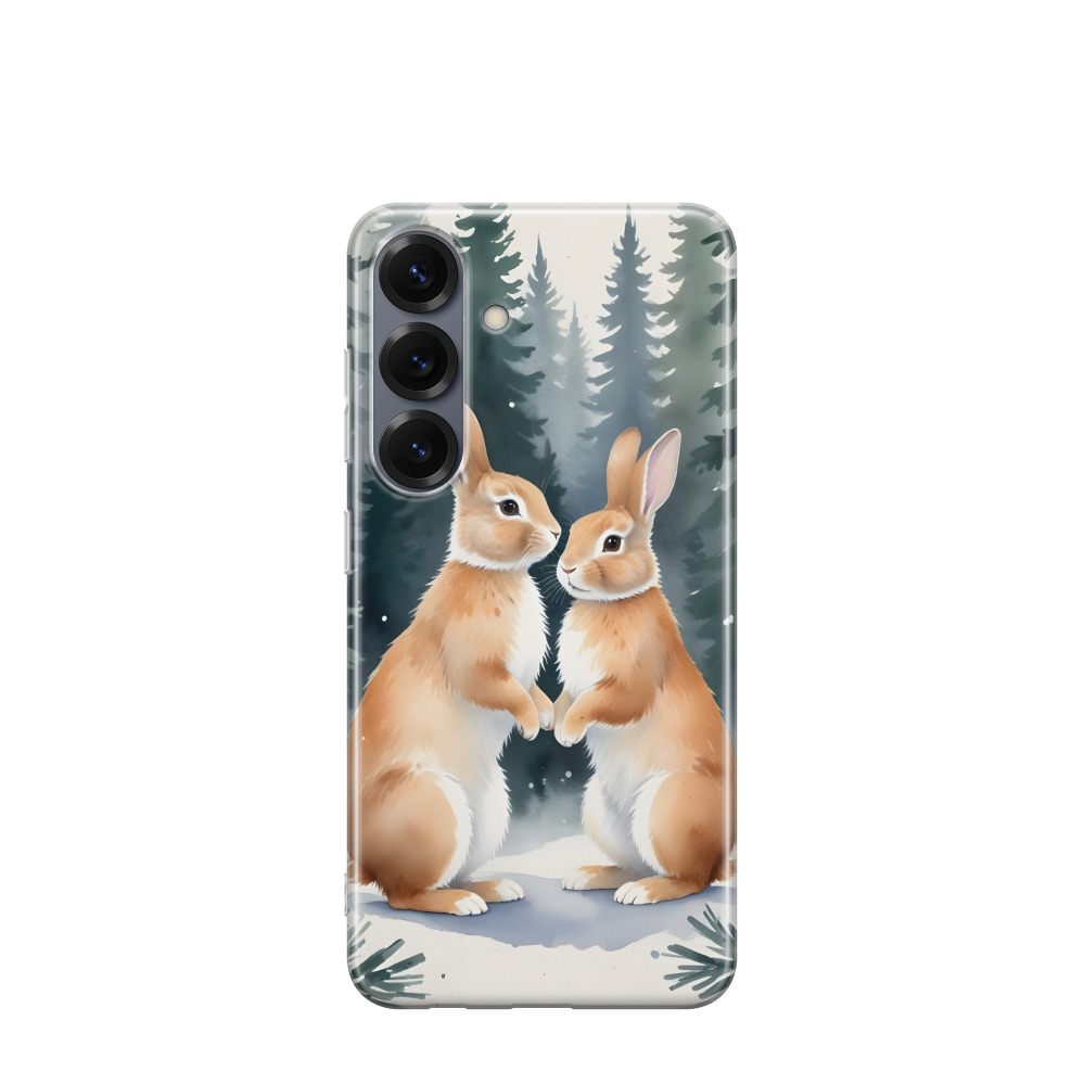 Samsung Galaxy S25 Gummi Hülle Fellnasen im Winterwald - Braun