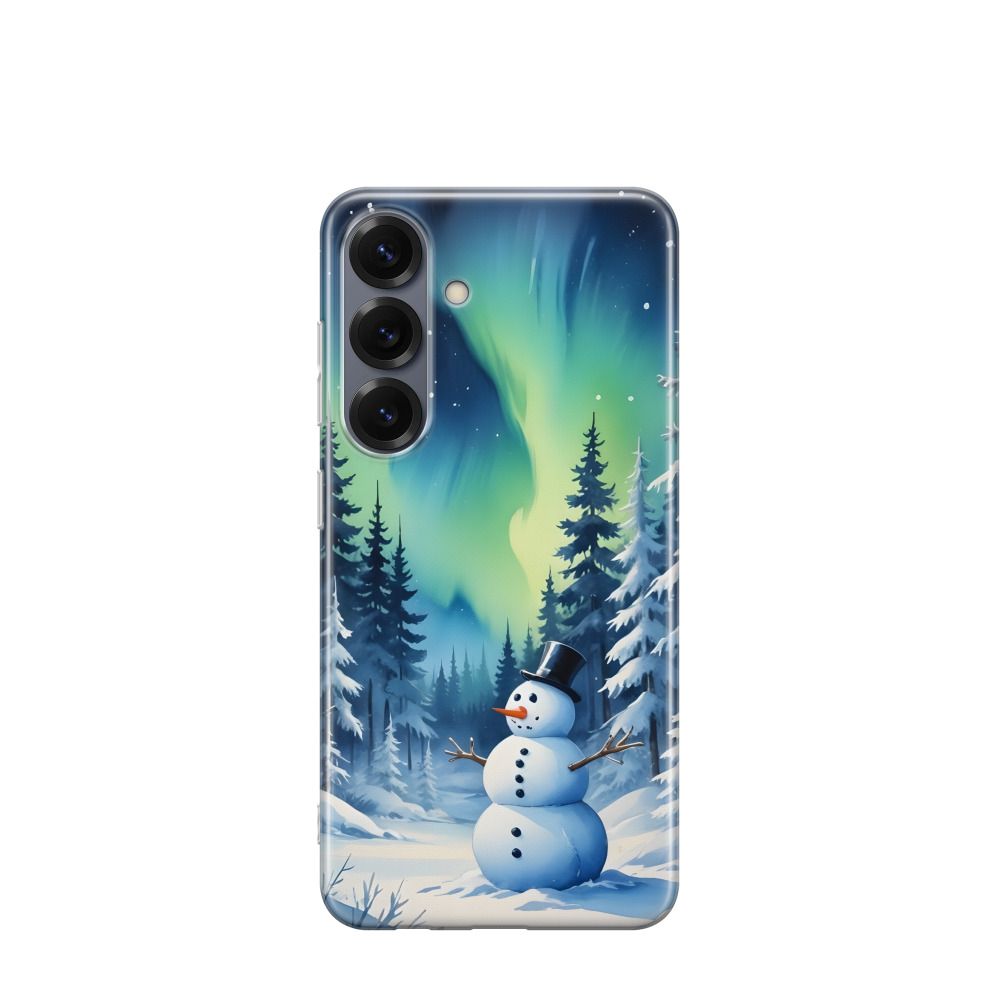 Samsung Galaxy S25 Gummi Hülle Nordlicht Schneemann - Türkis