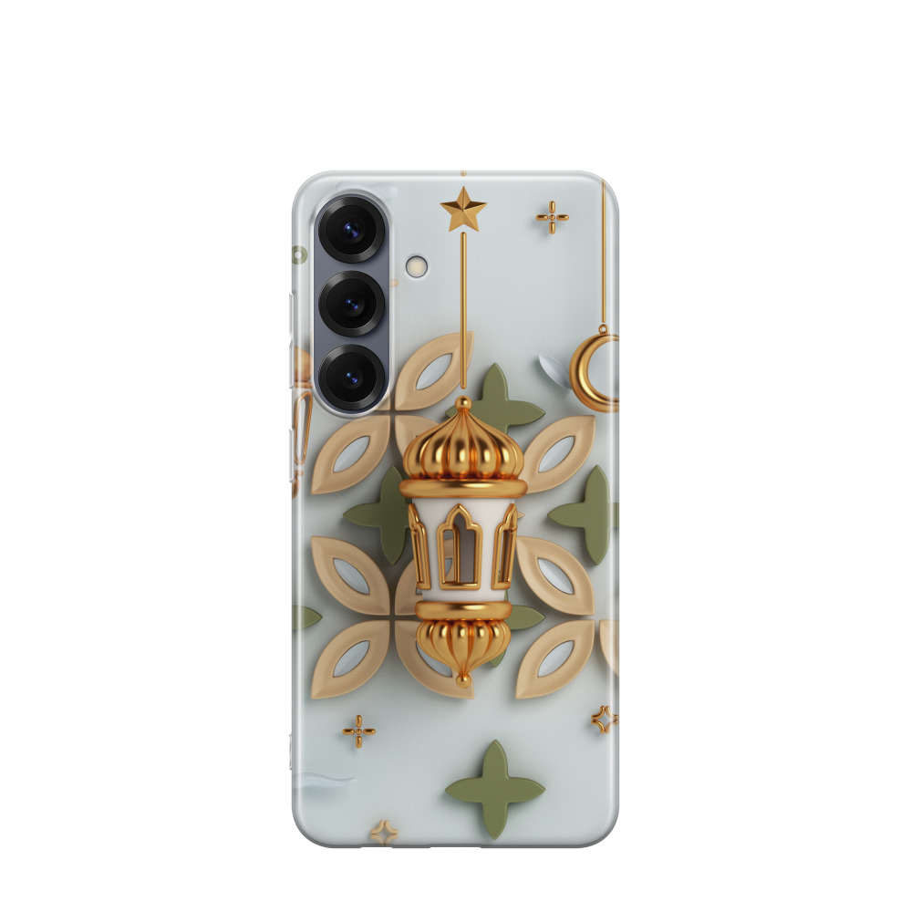 Samsung Galaxy S25 Gummi Hülle Ramadan-Lichter - Gold