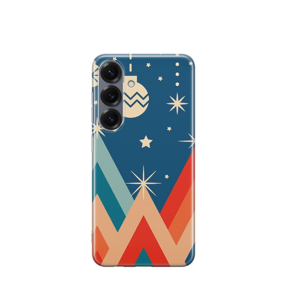 Samsung Galaxy S25 Gummi Hülle Weihnachtsberge - Blau / Gelb / Rot