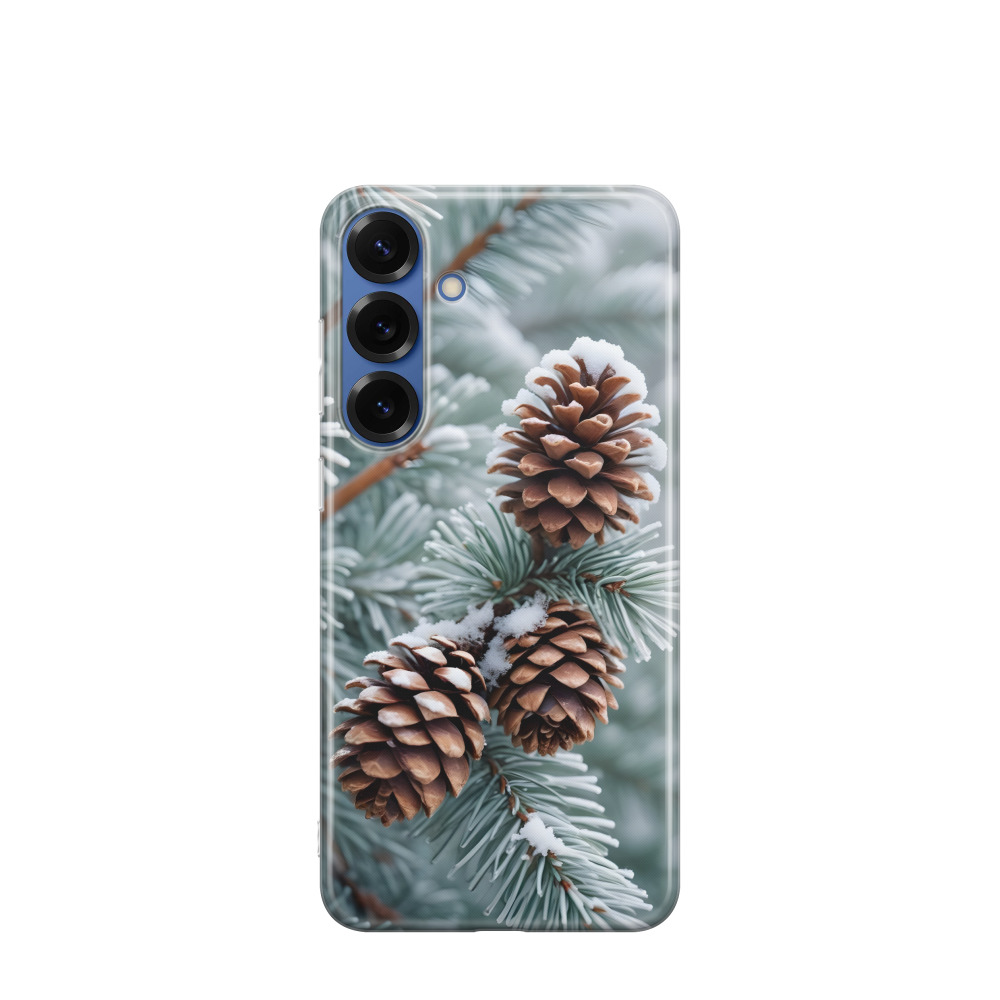 Samsung Galaxy S25 Plus Gummi Hülle Frostige Kiefernträume - Braun