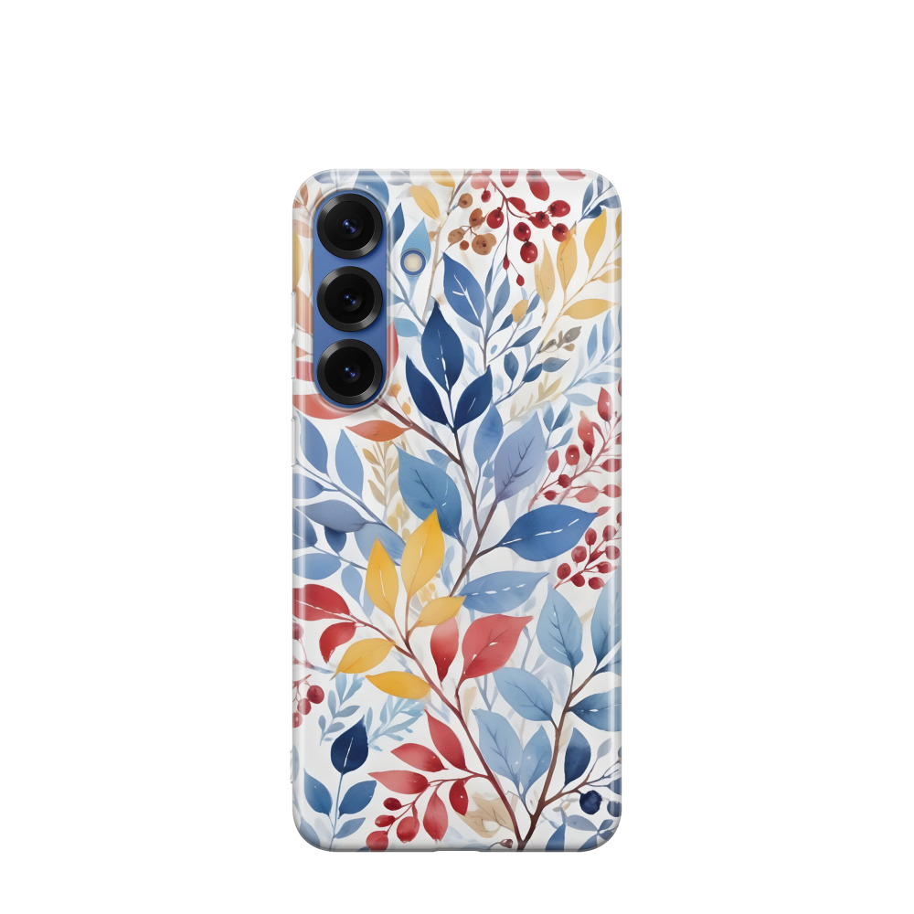 Samsung Galaxy S25 Plus Gummi Hülle Frostiger Blättertanz - Blau / Gelb / Rot