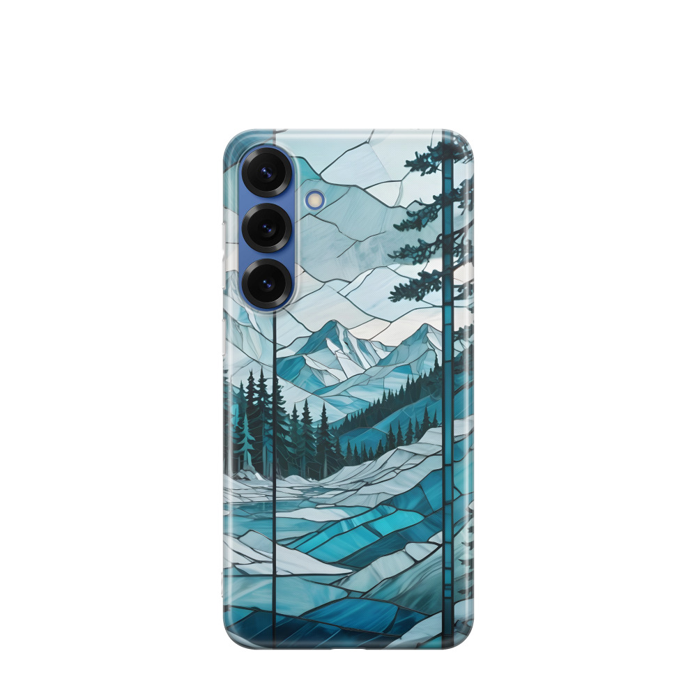 Samsung Galaxy S25 Plus Gummi Hülle Glasiger Winterwald - Blau