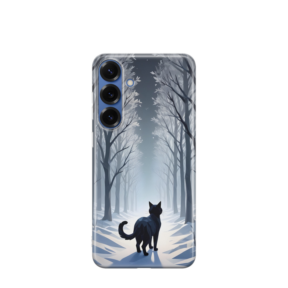 Samsung Galaxy S25 Plus Gummi Hülle Katze im Winterwald - Schwarz