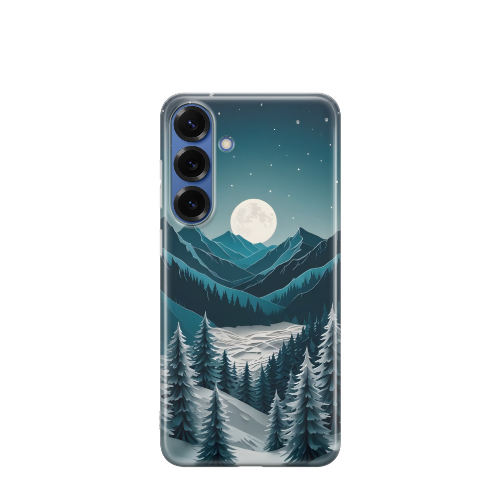 Samsung Galaxy S25 Plus Gummi Hülle Winternacht in den Bergen - Schwarz