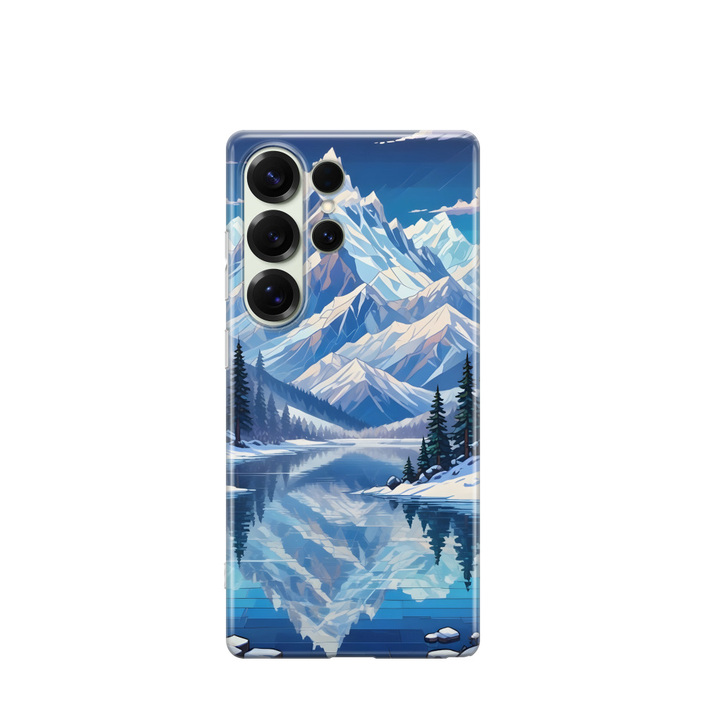Samsung Galaxy S25 Ultra Gummi Hülle Bergzauber im Eissee - Blau