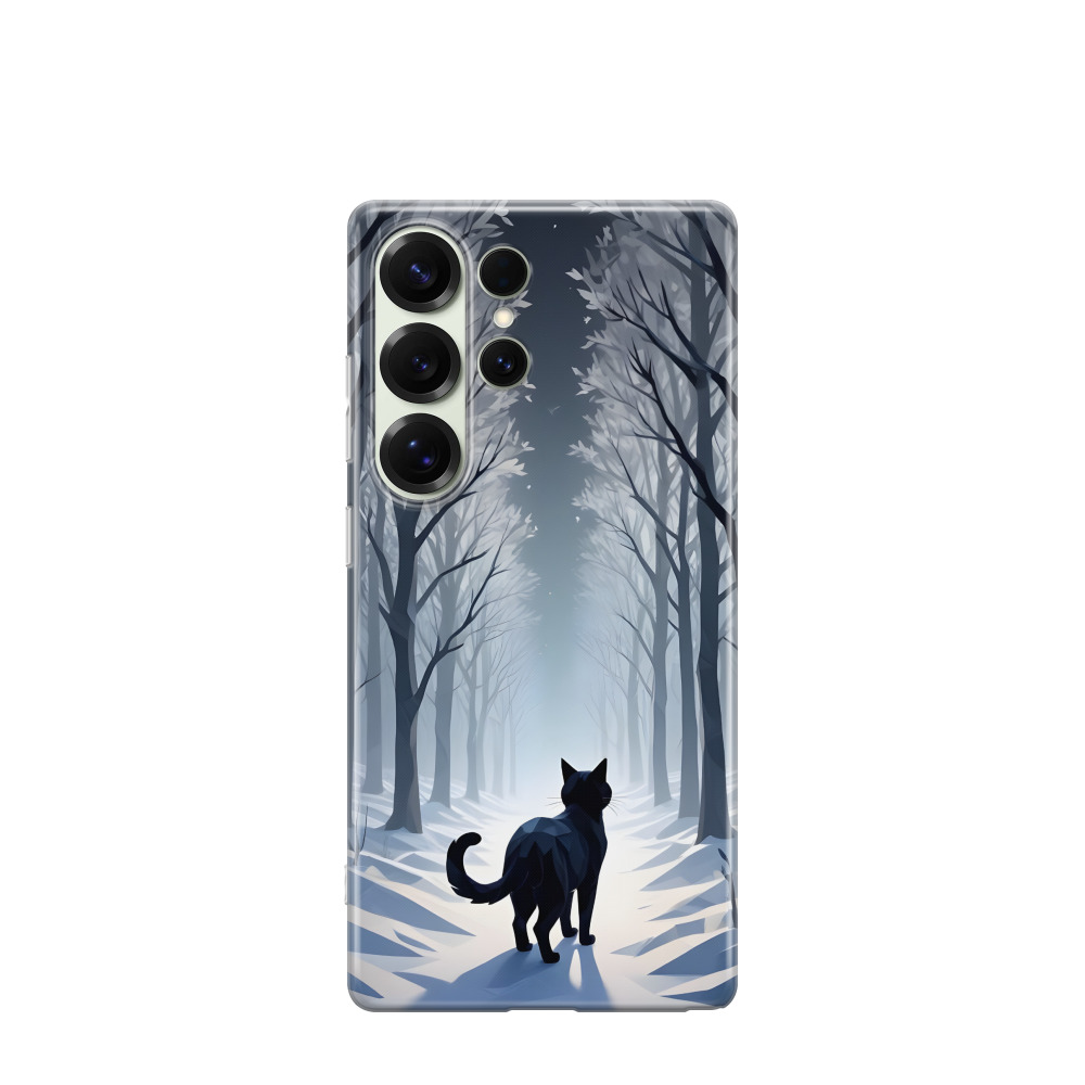 Samsung Galaxy S25 Ultra Gummi Hülle Katze im Winterwald - Schwarz