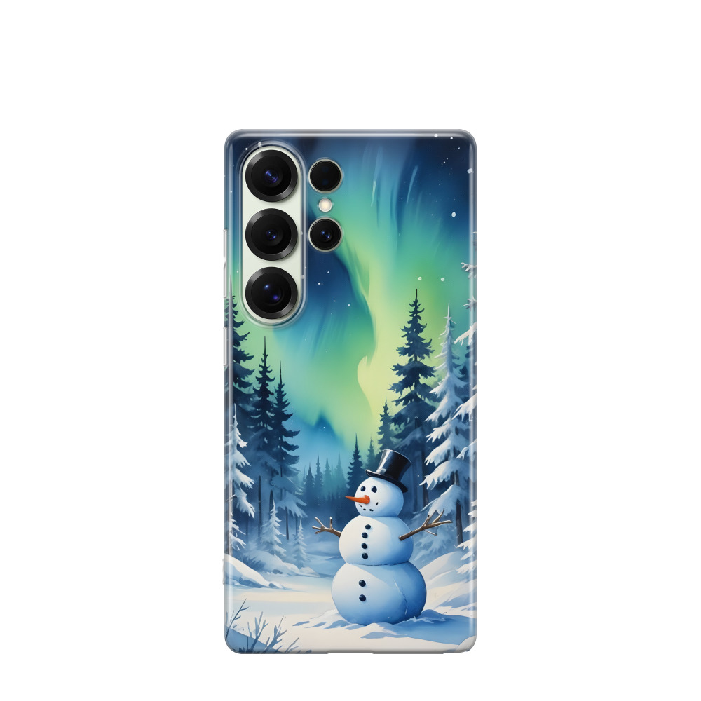 Samsung Galaxy S25 Ultra Gummi Hülle Nordlicht Schneemann - Türkis