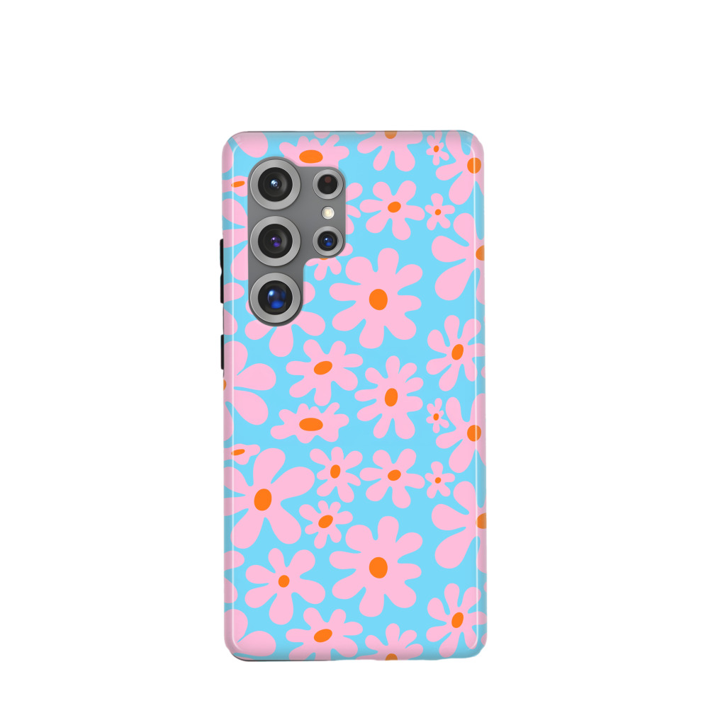 Samsung Galaxy S25 Ultra Hybrid (Kunststoff / Gummi) Hülle Soft Blue Petals - Rosa