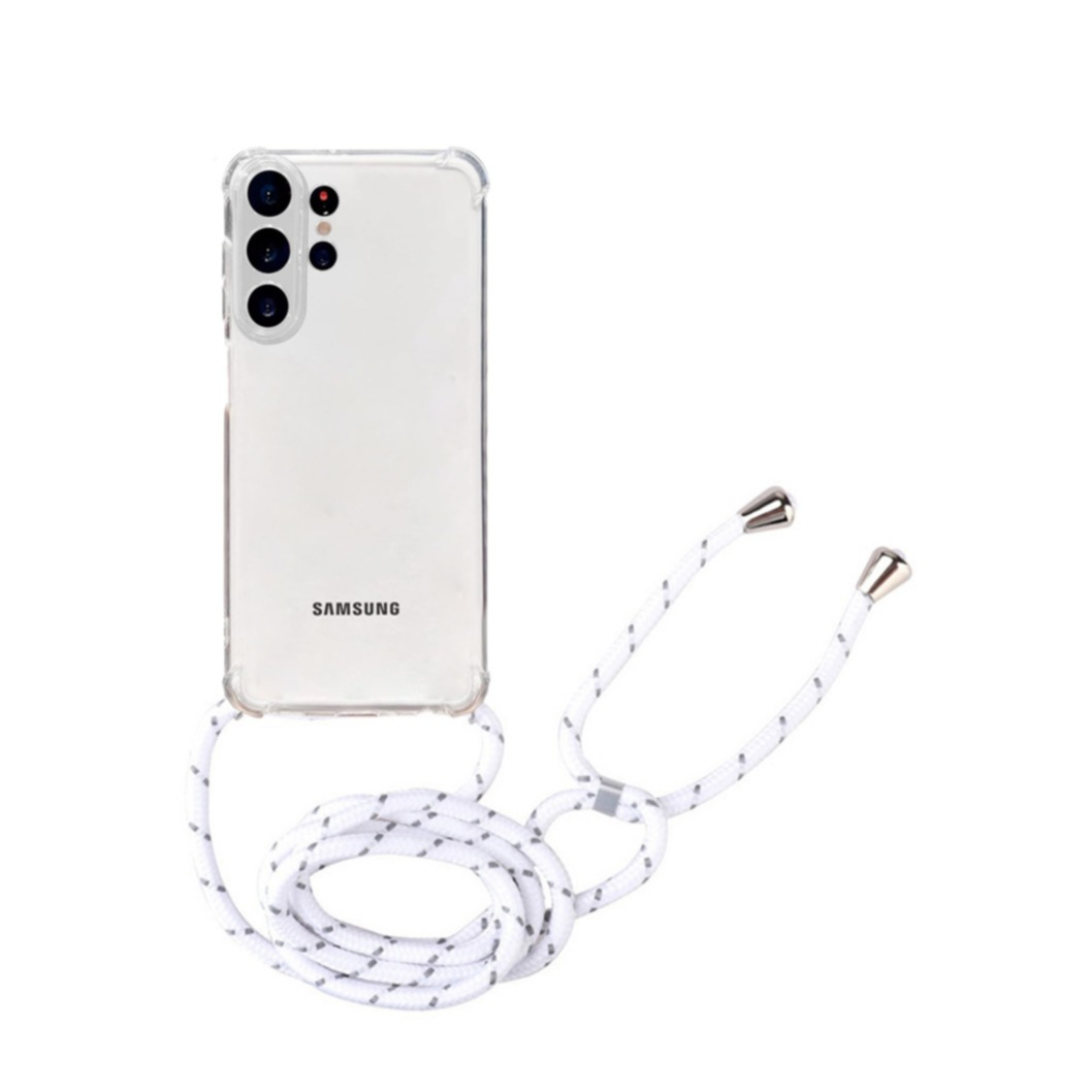 Samsung Galaxy S26 Ultra Necklace Gummi Hülle Air Cushion Fallschutz + Handykette (150cm) - Weiss / Silber
