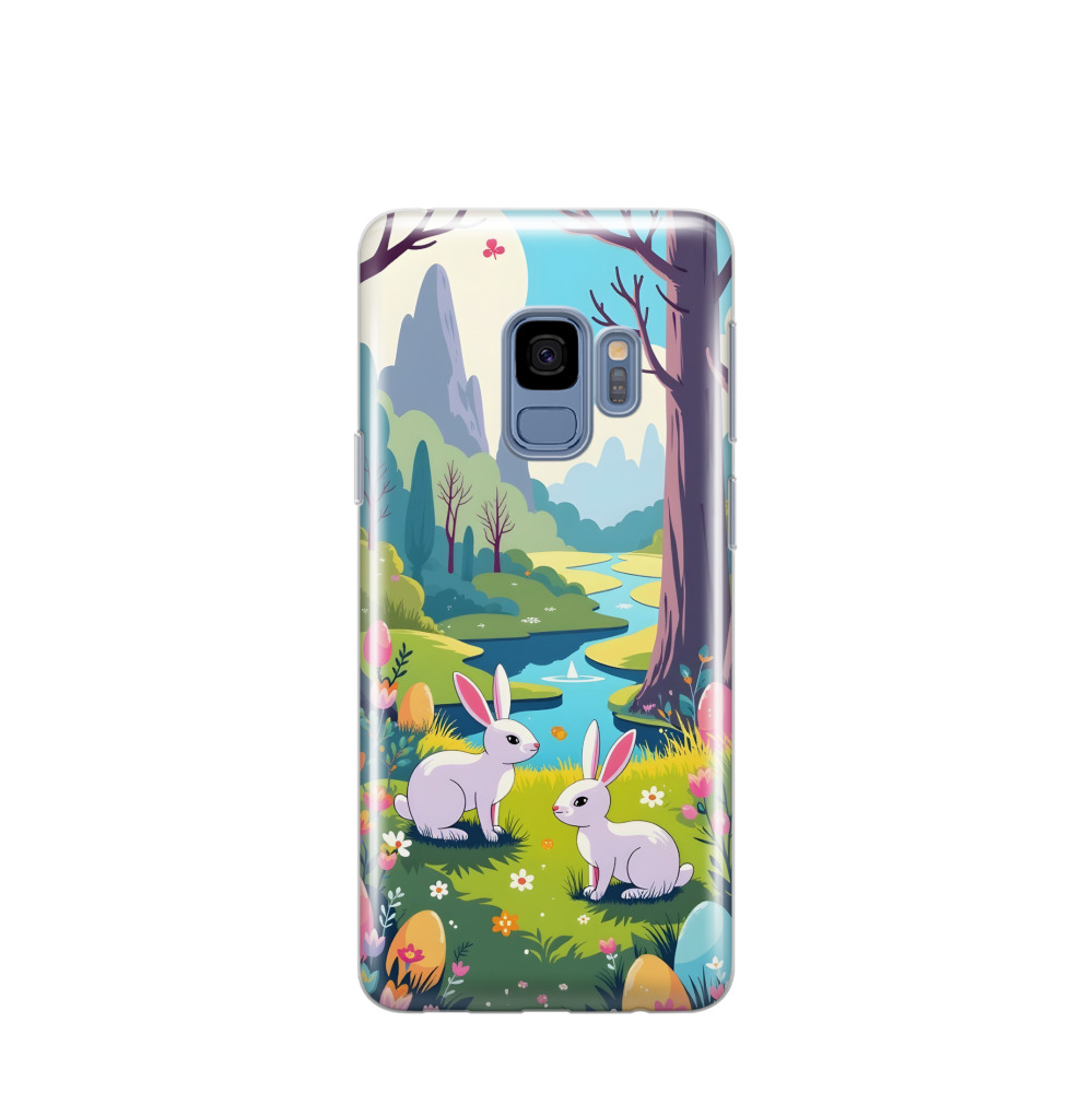 Samsung Galaxy S9 Gummi Hülle Blütenpracht und Osterträume - Blau / Gelb / Rot