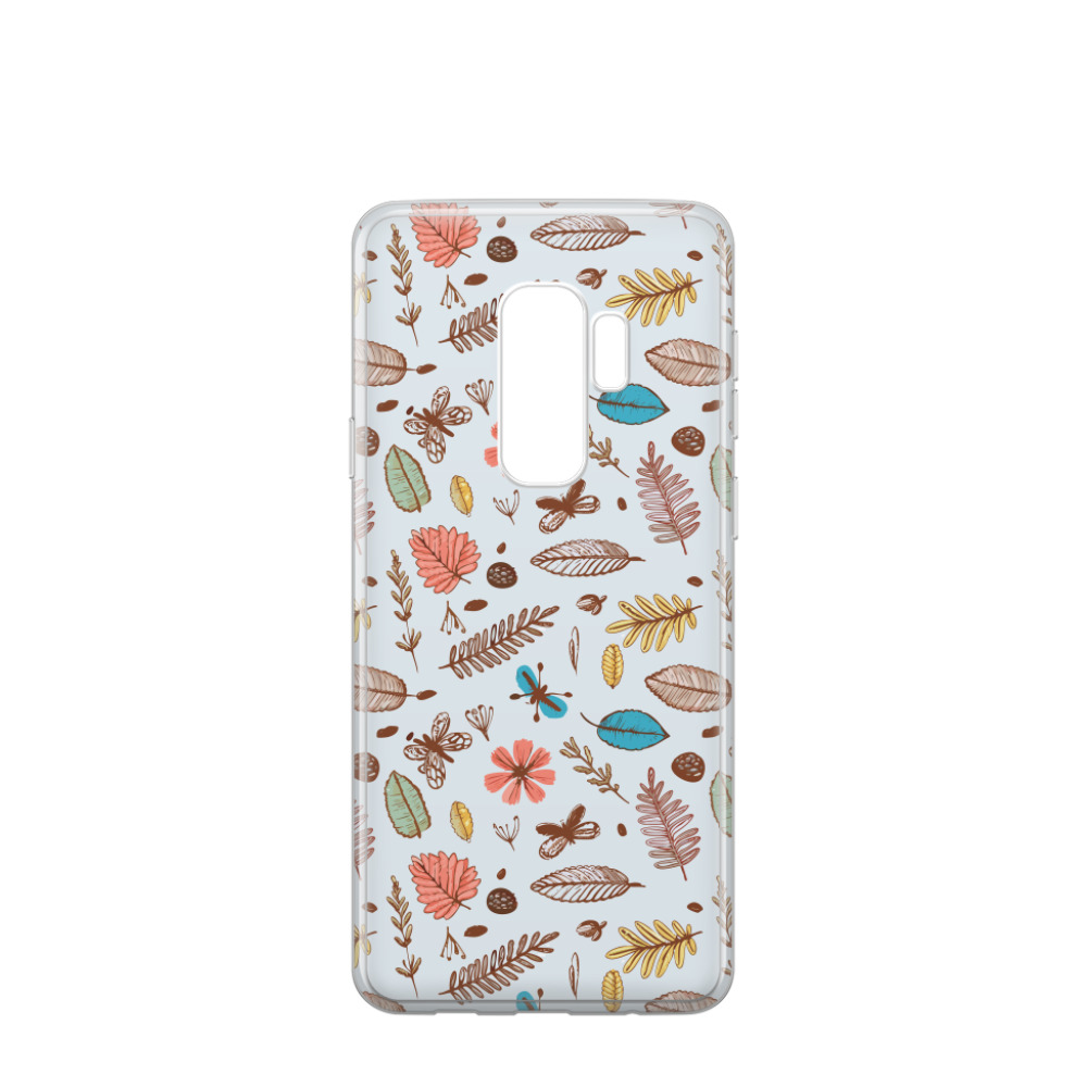 Samsung Galaxy S9 Plus Gummi Hülle Herbstblüten 03 - Blau / Gelb / Rot