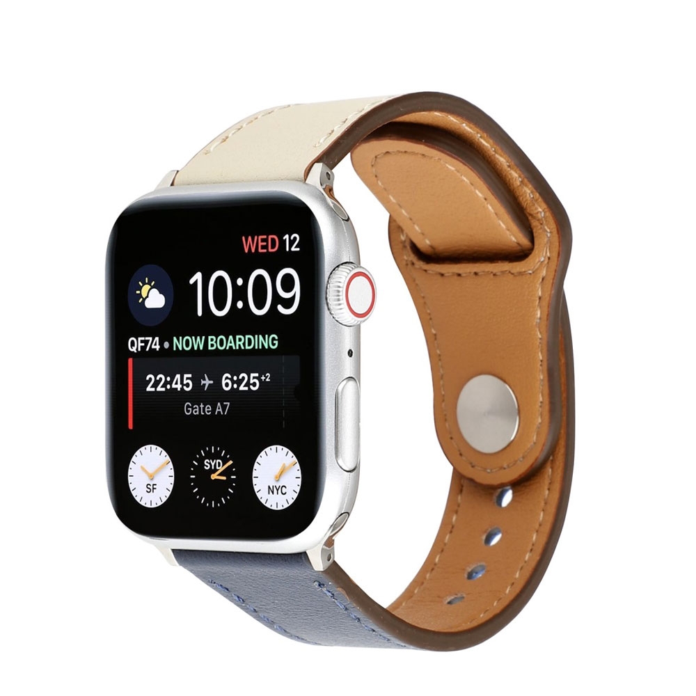 1 x Apple Watch (42/41/40/38 mm) Echtleder Ersatz Armband mit Druckverschluss (Gelenkumfang 172-214 mm) - Blau / Weiss