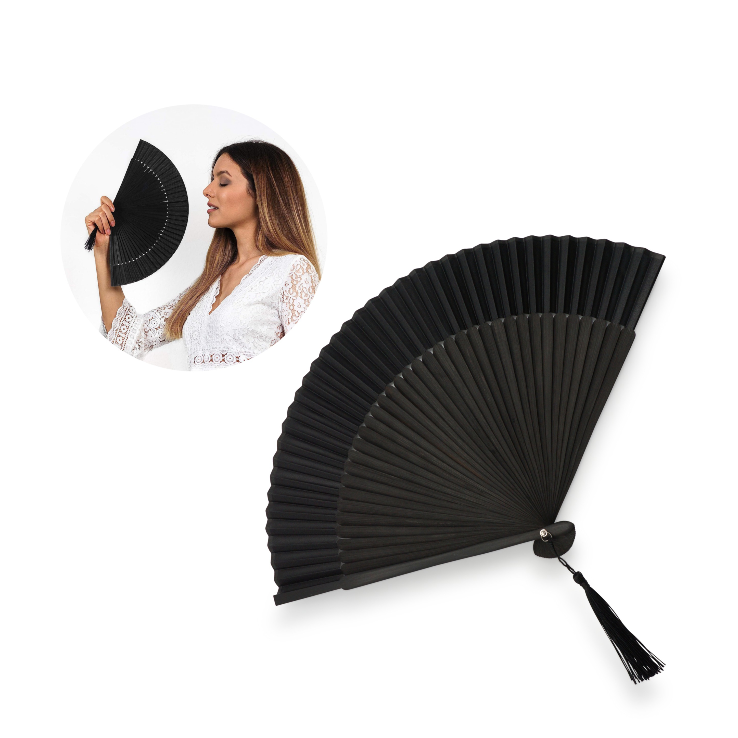 Bambus Fächer Faltbarer Handfächer Sommer Fan mit Quasten Anhänger - Schwarz