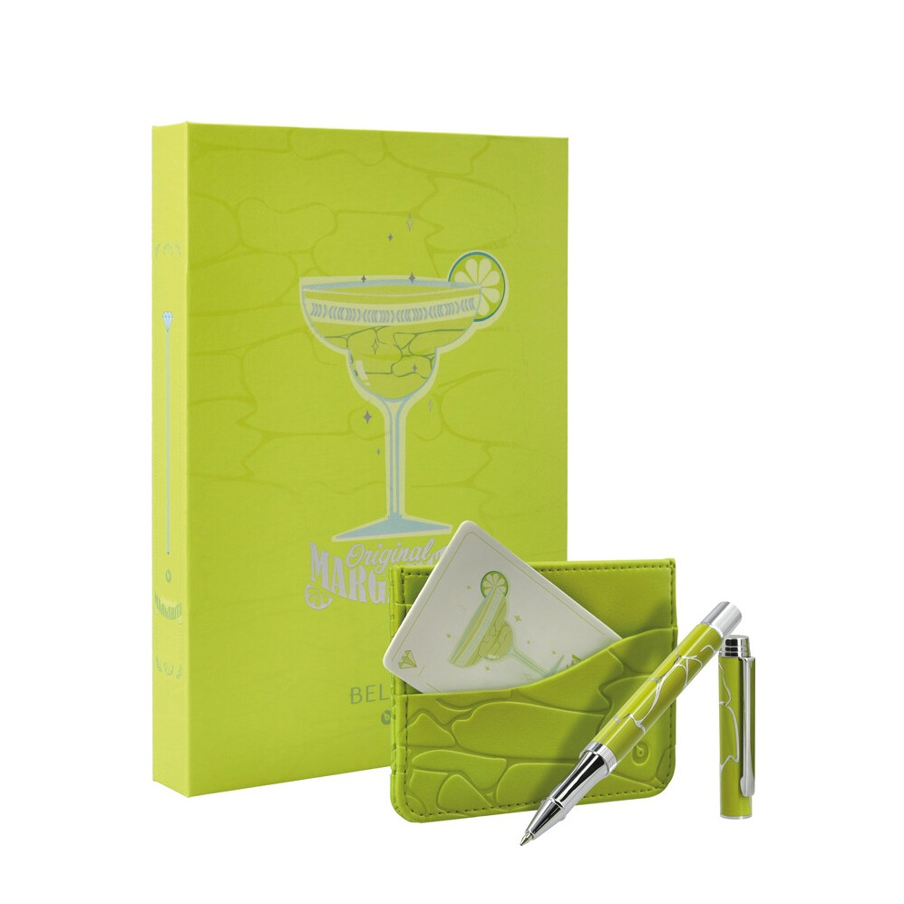 (4-tlg. Set) The Cocktail Menu Aluminium Kugelschreiber mit Deckel inkl. Kreditkarten Etui RFID + Geschenk Schachtel (BB365) - Margarita