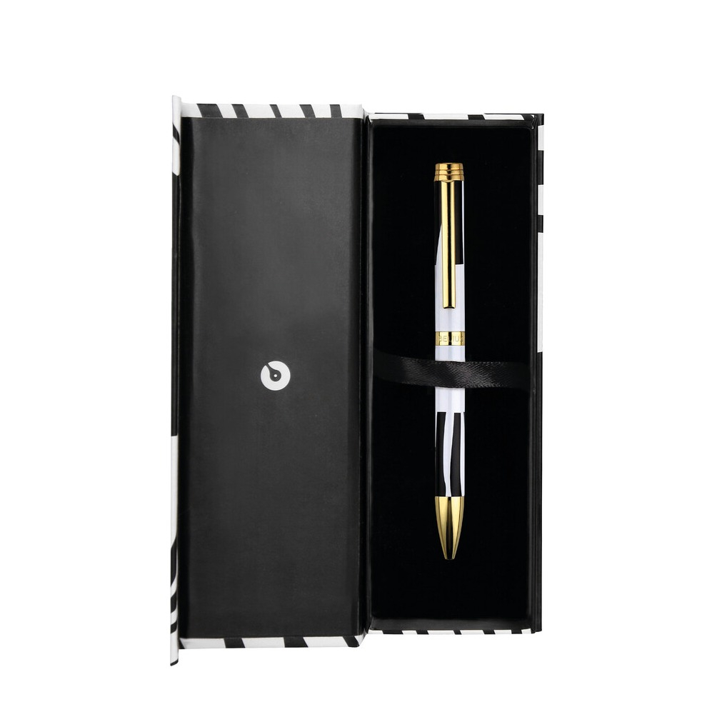 Dann ist dieser elegante Kugelschreiber von BELIUS eine geschmackvolle Wahl. Der hochwertige Schaft aus Aluminium überzeugt mit einem modernen Design in den Farben Weiss und Schwarz. Das Design ist von Kontrast und Dualität inspiriert und wird durch goldene Details zusätzlich hervorgehoben. Der Deckel mit Metallclip schützt die Spitze und sorgt dafür, dass der Stift sicher befestigt werden kann. Mit seiner blauen Schreibfarbe eignet sich das Schreibgerät ideal für Notizen, Unterschriften oder den täglichen Gebrauch. Dank der nachfüllbaren Mine begleitet dich der Stift langfristig im Alltag. Geliefert wird er in einer passenden Geschenk Schachtel, die das edle Gesamtbild harmonisch abrundet und ihn zu einem besonderen Präsent macht.