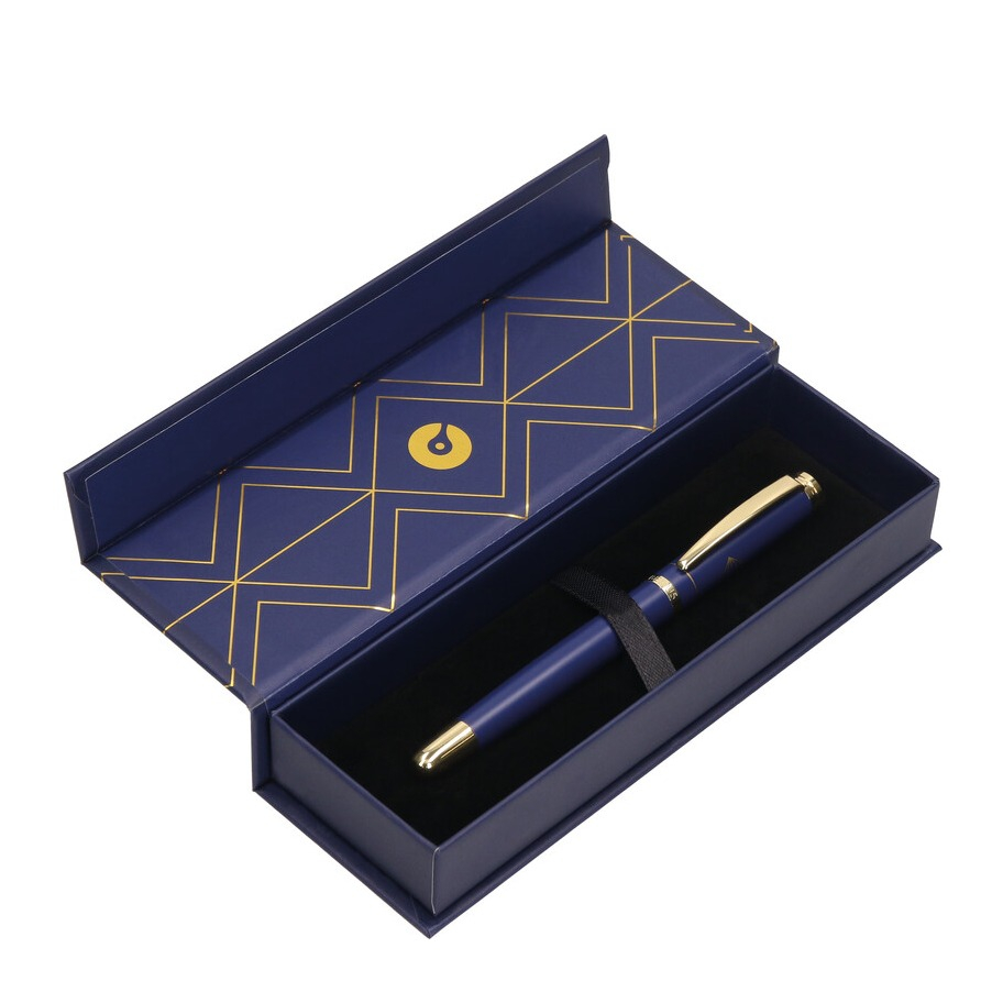 Soirée Aluminium Kugelschreiber mit Deckel inkl. Geschenk Schachtel (BB261) - Blau / Gold