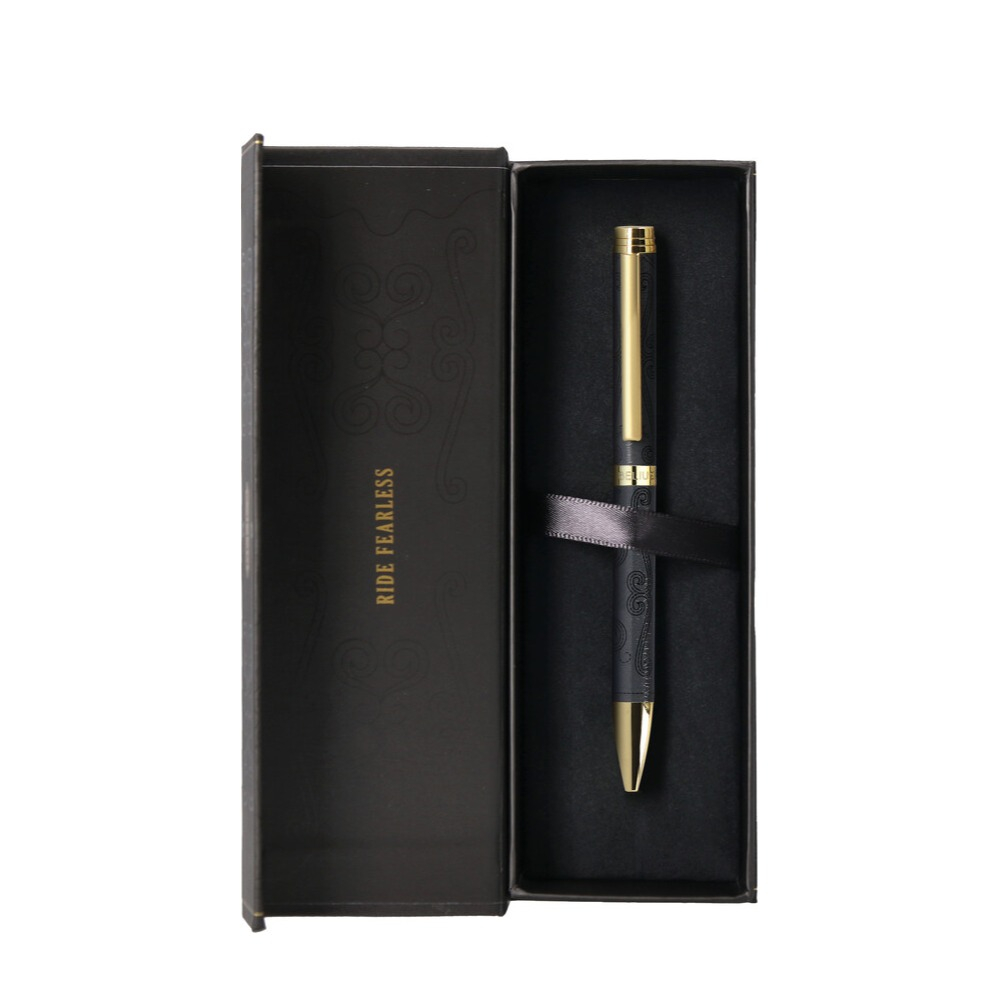 Dann ist dieser elegante Kugelschreiber von BELIUS eine besondere Wahl. Der hochwertige Schaft aus Aluminium überzeugt mit einem Design, das vom Wilden Westen inspiriert ist und durch feine Muster sowie goldene Details stilvoll ergänzt wird. Der Deckel mit Metallclip schützt die Spitze und sorgt dafür, dass der Stift sicher befestigt werden kann. Mit seiner blauen Schreibfarbe eignet sich das Schreibgerät ideal für Notizen, Unterschriften oder den täglichen Gebrauch. Dank der nachfüllbaren Mine begleitet dich der Stift langfristig im Alltag.