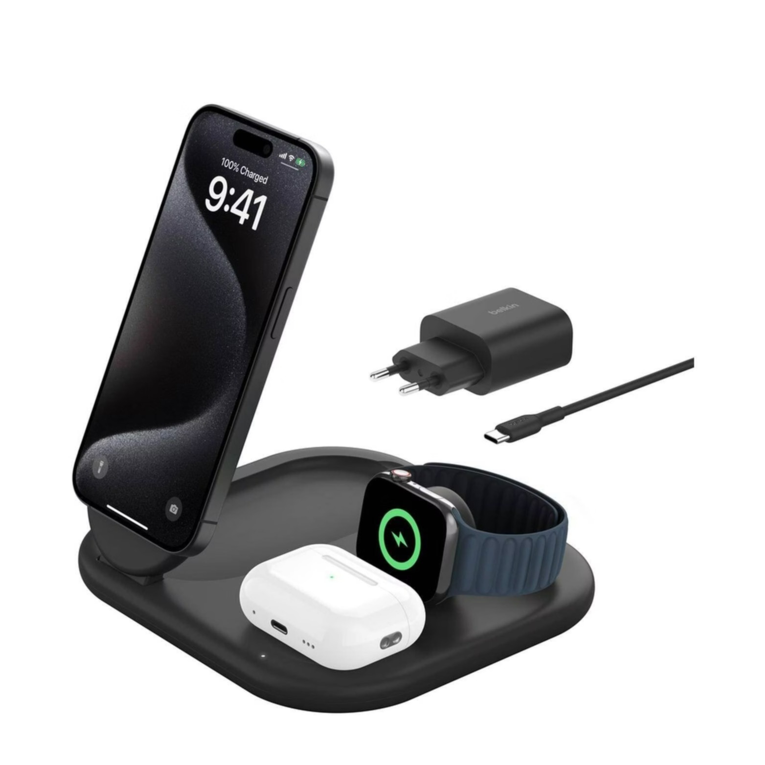 HINWEIS: Im Lieferumfang ist kein Smartphone, keine AirPods oder Apple Watch enthalten. Es handelt sich lediglich um die Ladestation.