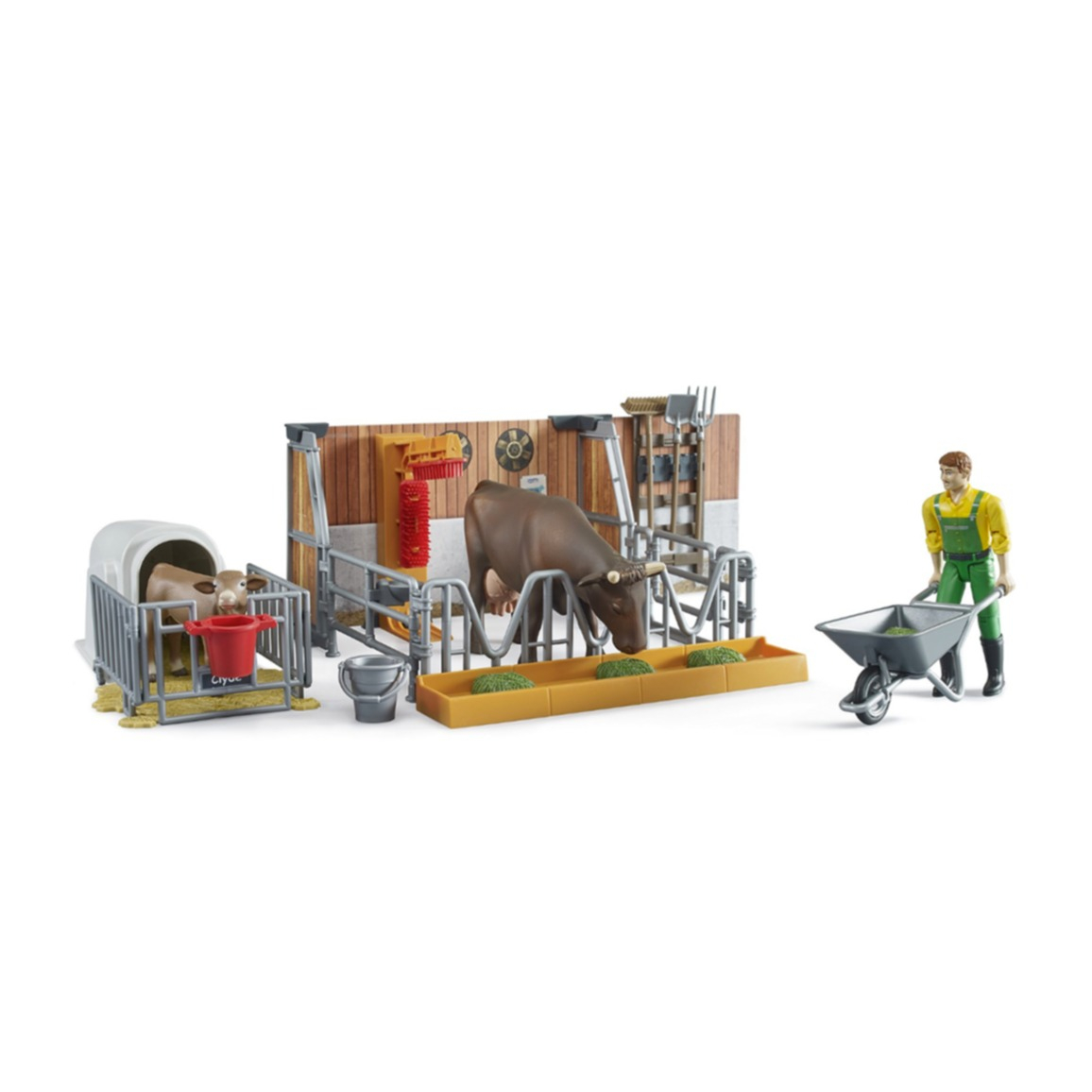 (7-tlg. Set) 1:16 Kuh- und Kälberstall Kinder Spielzeug Bauernhof Spiel inkl. Landwirt (310.62611)