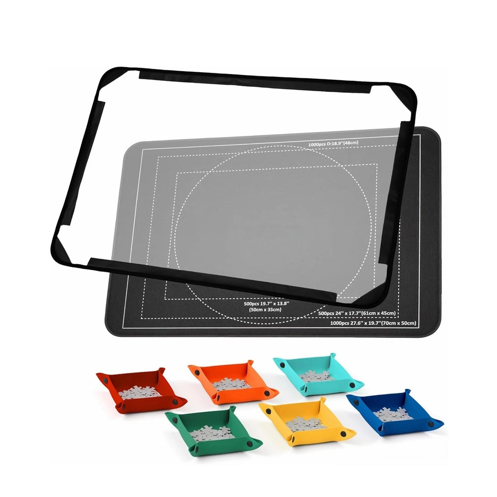 (80x55cm) Puzzle Matte Faltbare Aufbewahrungs Unterlage inkl. Transparente Abdeckung / Filz Schalen für Puzzle Teile