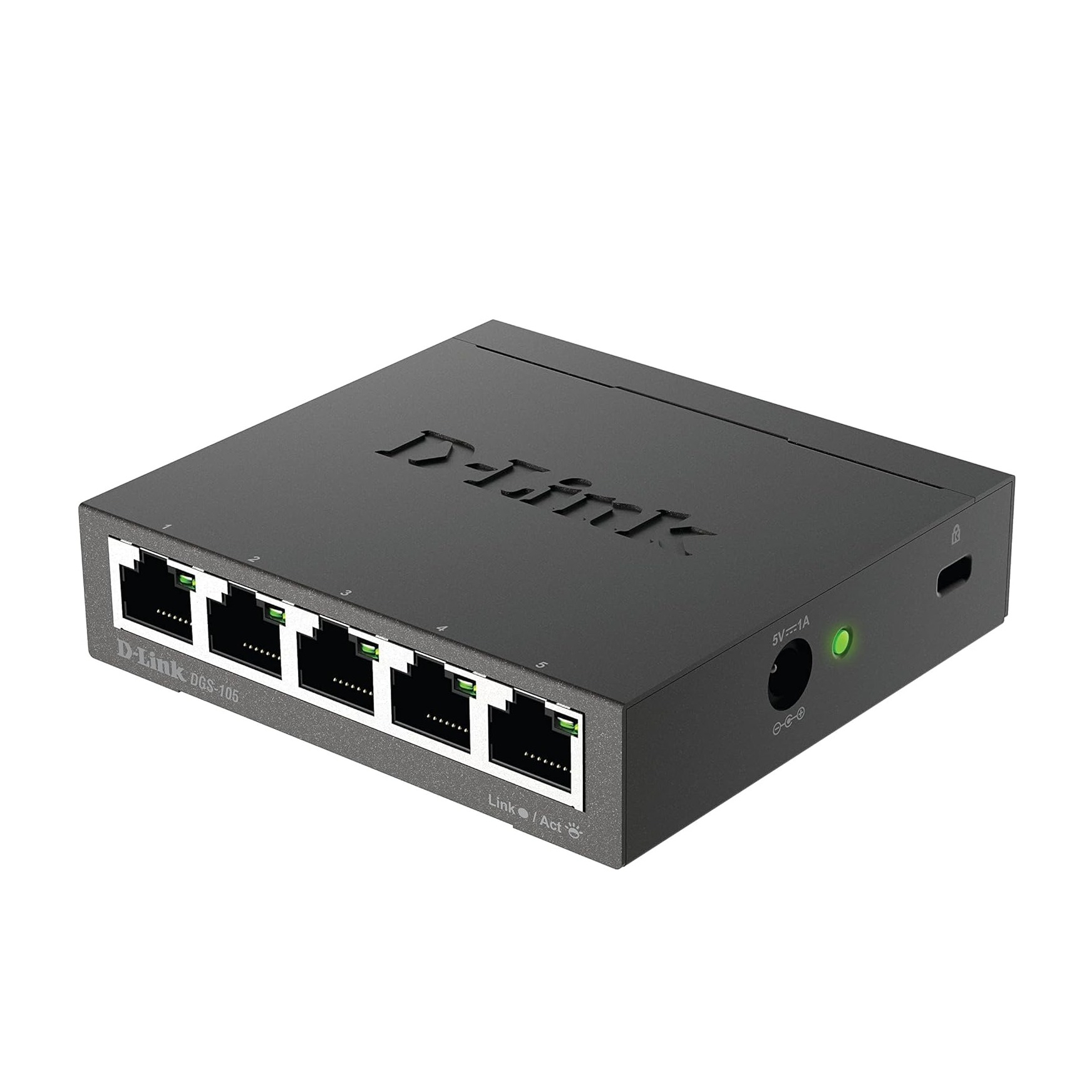 D-Link - DGS-105 Desktop Switch mit 5 Ports für Netzwerk Ethernet LAN RJ45 mit Netzteil 2000 Mbit/s (DGS-105/E) - Schwarz