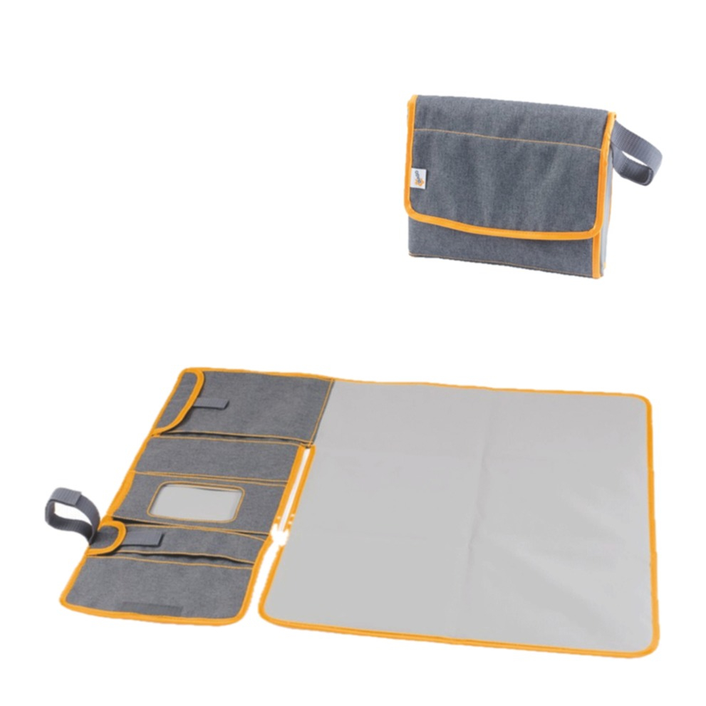 Gefertigt aus hochwertigem Polyester-Twill bietet die abwaschbare Wickelunterlage eine hygienische Fläche und ist frei von PVC. Zusammengefaltet bleibt das Diago Quick&Easy angenehm schmal und lässt sich platzsparend verstauen oder unkompliziert am Kinderwagen befestigen. Optisch überzeugt es in grau meliert mit oranger Umrandung – funktional, praktisch und alltagstauglich.