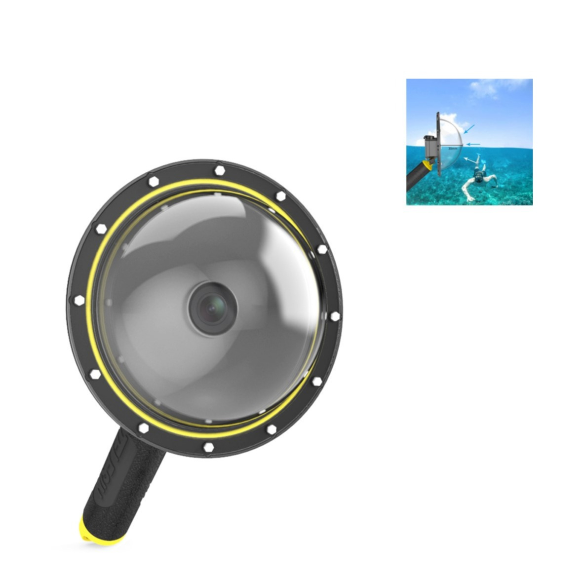 DJI Osmo Action Taucherglocke Dome-Port Unterwasser Kamera Linse + Griff (IP68) - Schwarz / Gelb