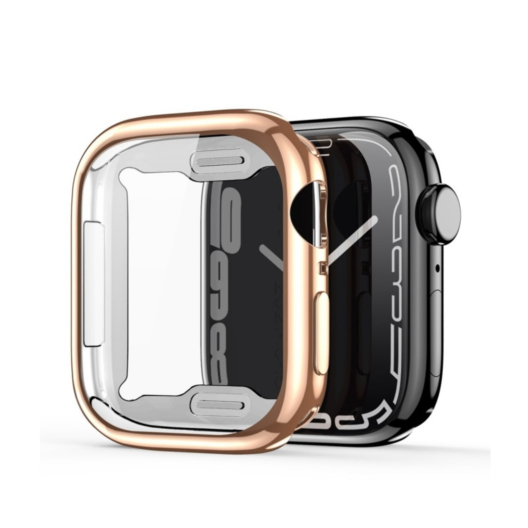 Apple Watch (44mm) Gummi Bumper Hülle mit Galvanisiertem Rahmen + Display Schutzfolie - Roségold