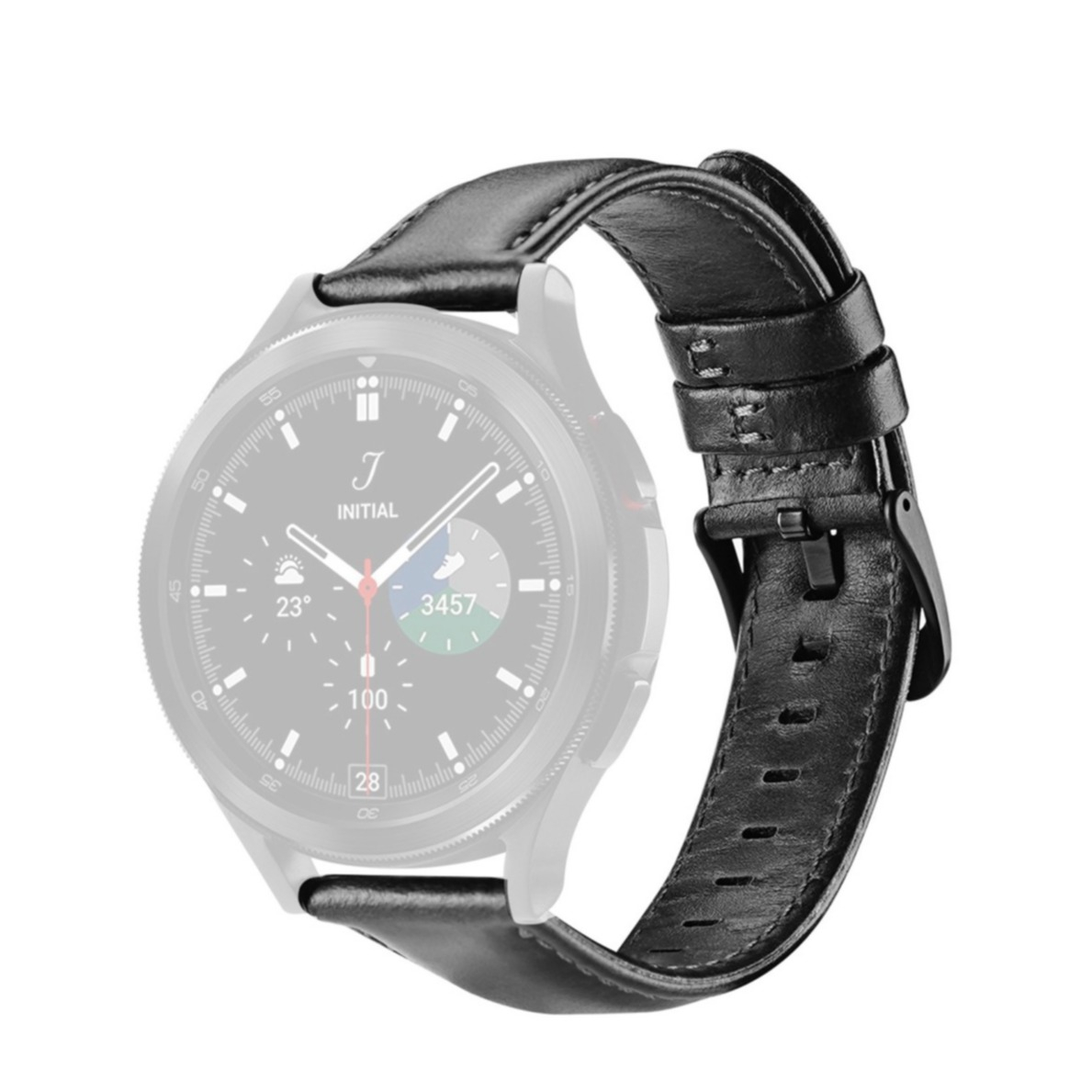 Samsung Galaxy Watch Active 2 (44mm) Echtleder Armband 20mm (Gelenkumfang: 170-220mm) - Schwarz