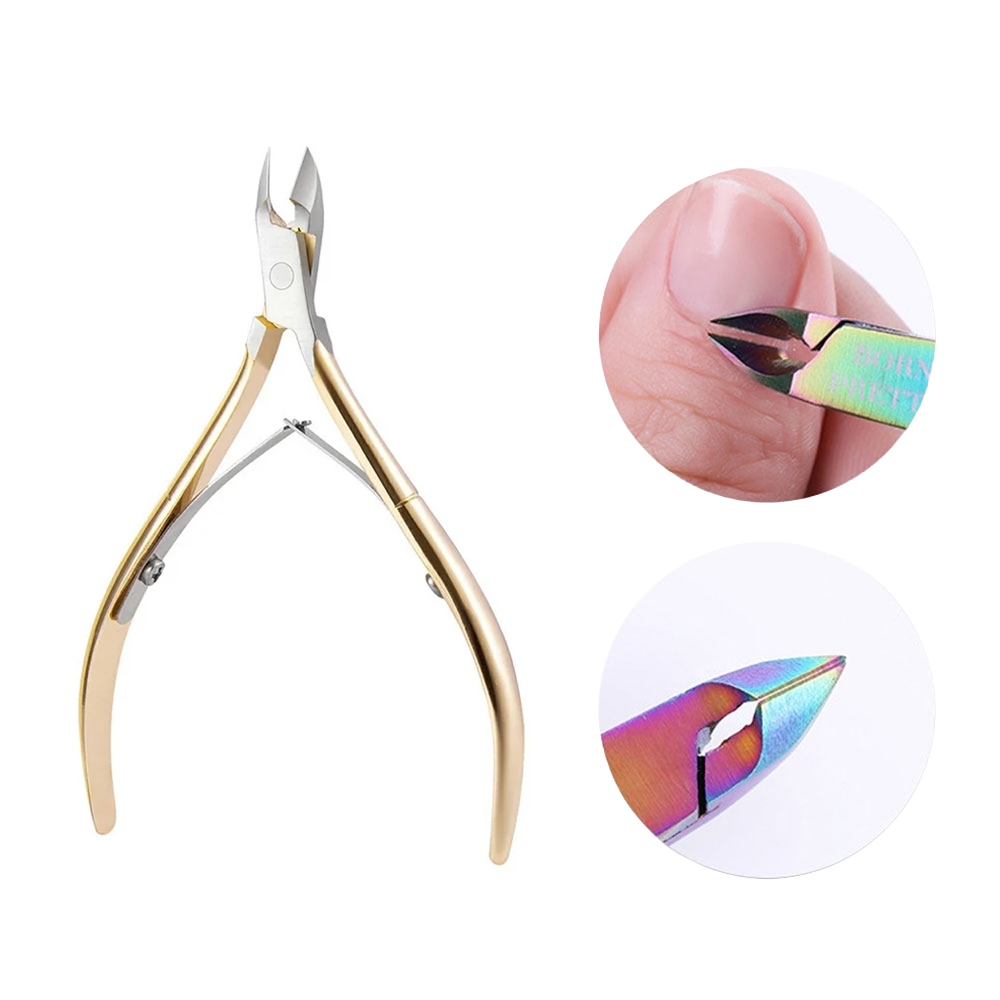 Edelstahl Nagelschere Pediküre Maniküre Nagelhautzange mit Doppelfeder - Gold