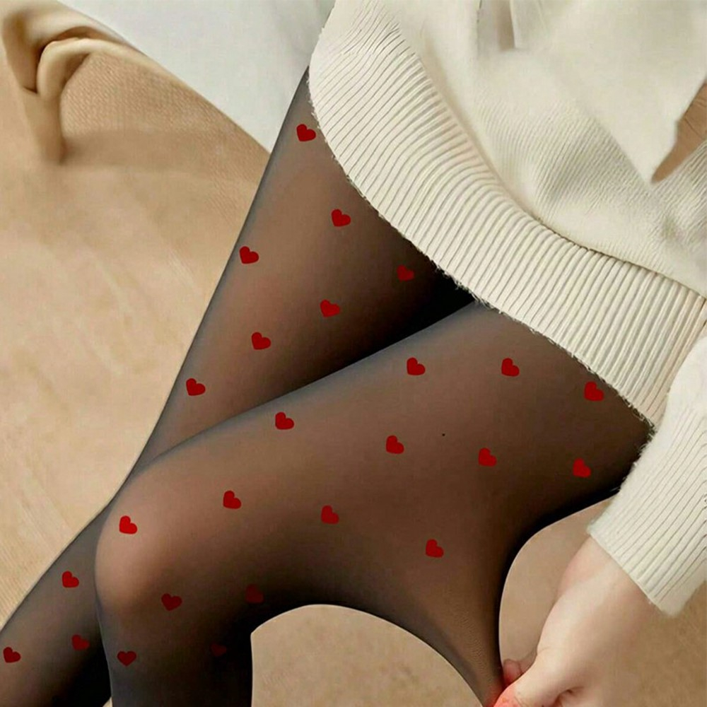 Elastische Winter Leggings Damen Strumpfhose gefütterte Fashion Stretch Plüsch Strümpfe (One Size) - Herzen