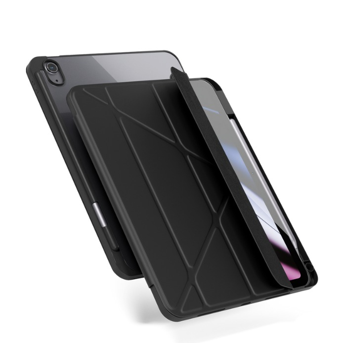 Die clevere Y-Falt- und Vierfach-Falt-Frontabdeckung erlaubt dir flexible Aufstellmöglichkeiten für jede Situation, ob im Schreibmodus oder beim Streamen deiner Lieblingsserie. Öffnest oder schliesst du das Case, reagiert dein iPad sofort dank der Sleep/Wake-Up Funktion ideal, um Energie zu sparen und jederzeit einsatzbereit zu sein.