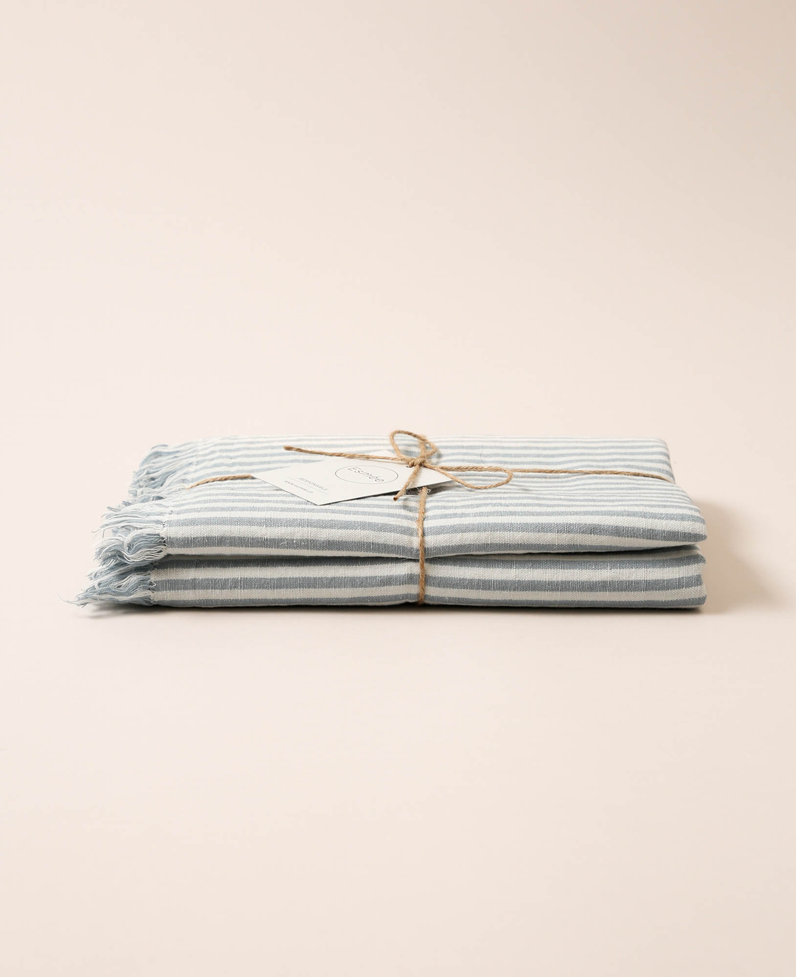 (100x190cm) Picknickdecke Strandtuch aus Baumwoll-Leinenmix - Weiss / Blau