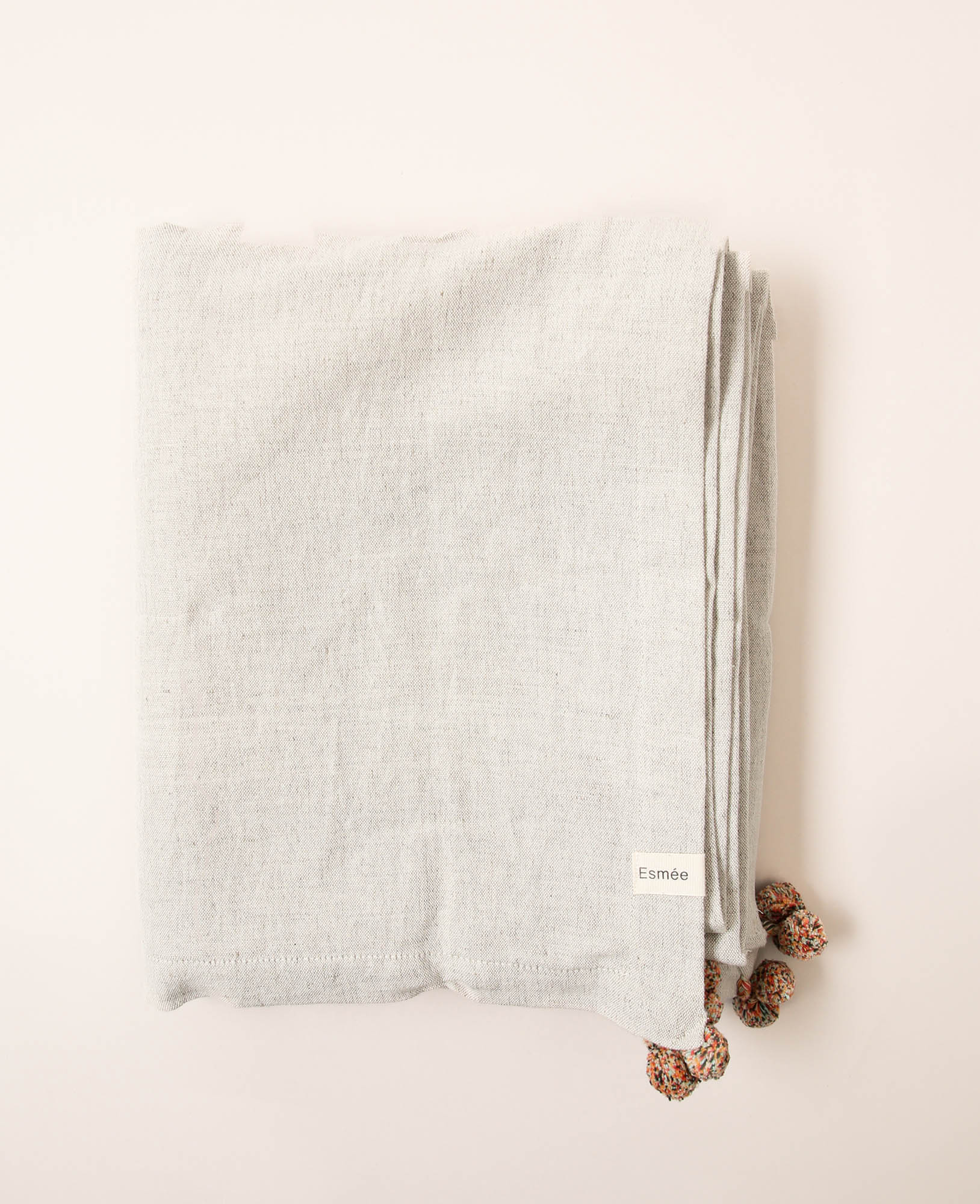 (140x250cm) Tischdecke Cleo aus Bio Baumwolle / Leinen mit Pompon's - Beige