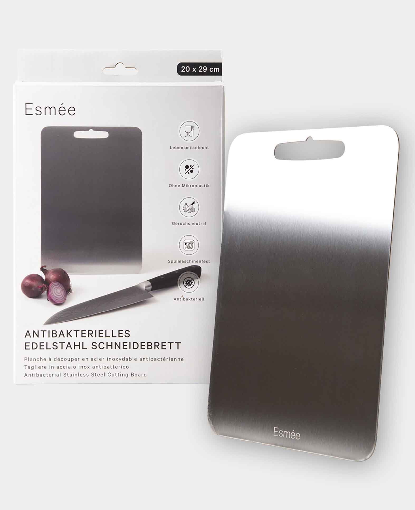 Entdecke jetzt das Edelstahl Schneidebrett von Esmée. Nachhaltig, extrem robust und schonend zu deinen Messern, ist es ein unverzichtbares Utensil in deiner Küche. Es ist so konzipiert, dass deine hochwertigen Messer länger scharf bleiben, wenn die Klingen härter als Edelstahl sind.