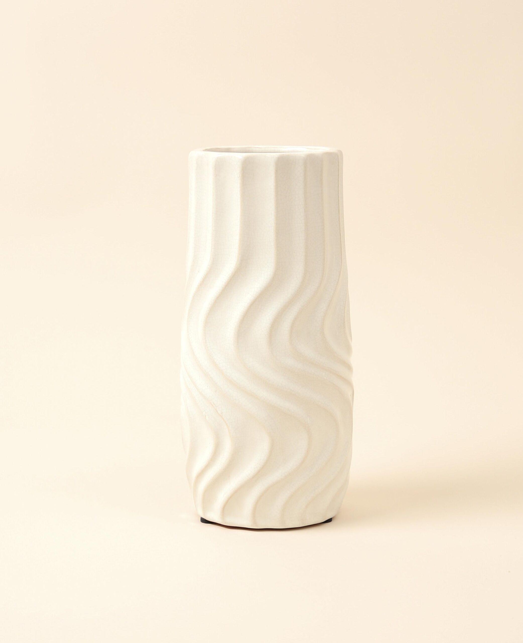(29.5cm) Glasierte Vase mit Twist Deko Blumenvase - Weiss
