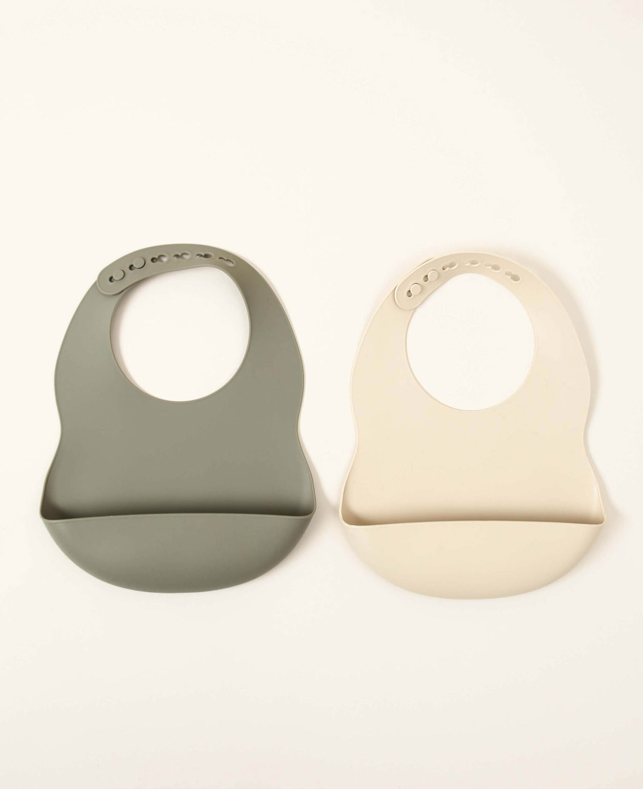 (2er Set) Silikon Lätzchen mit Auffangschale Grössenverstellbare Baby Lätzchen - Grau / Beige