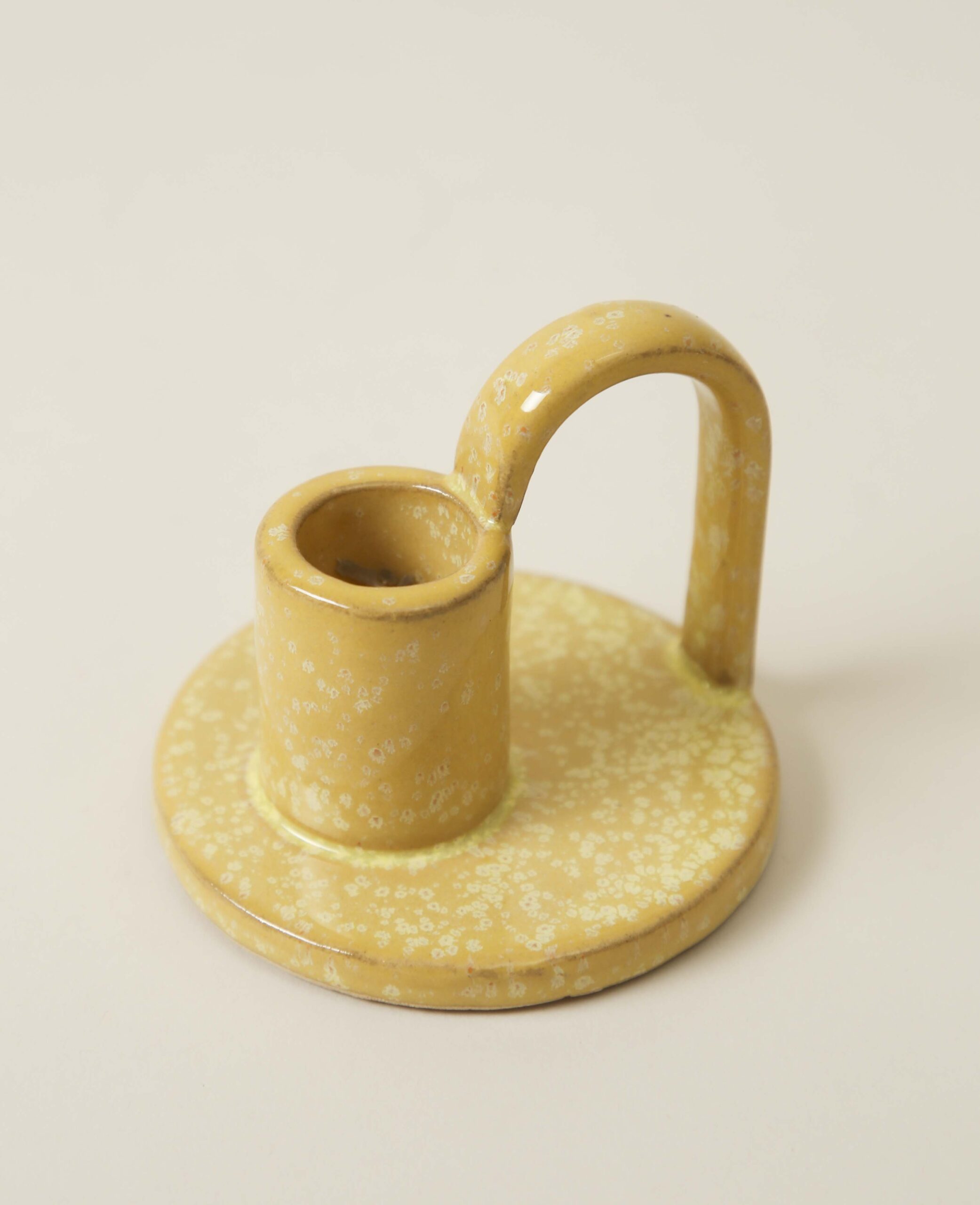 (Ø8.8cm) Keramik Kerzenhalter mit Griff / Glasurmuster - Gelb