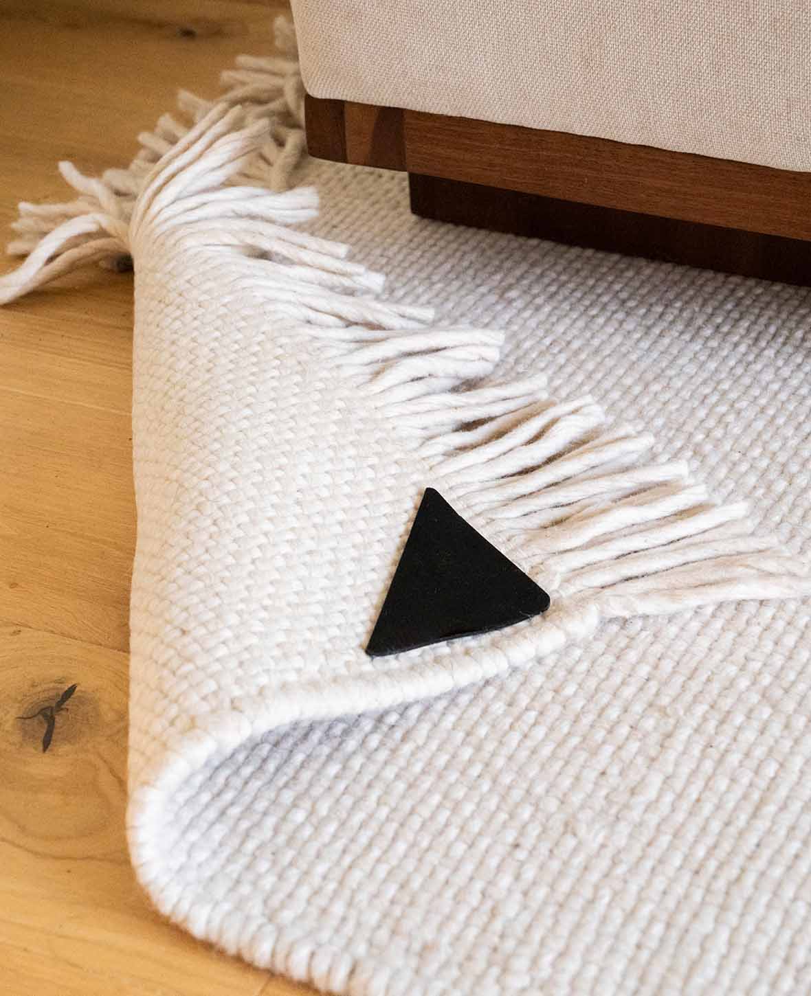 Die Anti-Rutsch Silikon Pads von Esmée sind die optimale Lösung für das alltägliche Problem mit verrutschenden Teppichen und Fussmatten. Diese praktischen, dreieckigen Pads halten deine Teppiche sicher und zuverlässig an Ort und Stelle, egal ob drinnen oder draussen. Einfach die Schutzfolie abziehen und auf die Unterseite deines Teppichs oder deiner Fussmatte kleben.