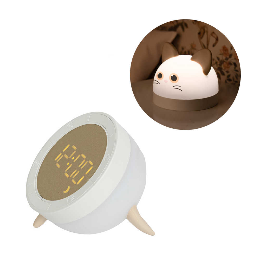 (11x9cm) 2in1 Silikon Wecker Kinder LED Nachtlicht Uhr Stimmungsleuchte (FI0541) - Katze