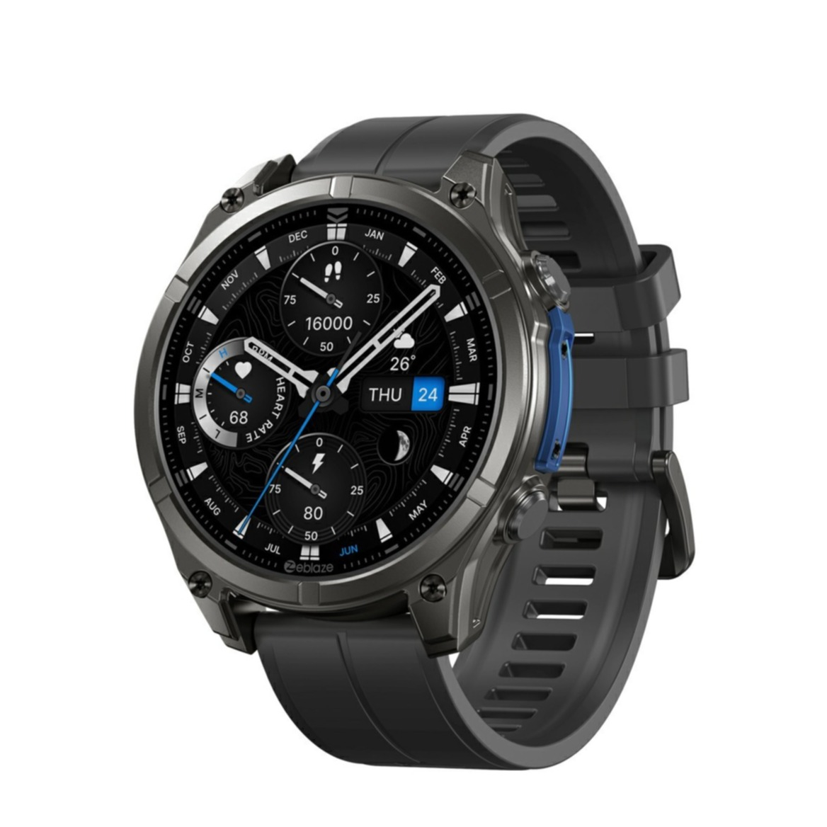 Die Smart Watch vereint robustes Design mit moderner Technik und ist ideal für Alltag, Sport und Outdoor Abenteuer. Das hochwertige Edelstahlgehäuse mit kratzresistentem Glas sorgt für eine widerstandsfähige Konstruktion, während das brillante AMOLED Display mit bis zu 1000 Nits Helligkeit auch bei Sonnenlicht gut ablesbar bleibt.