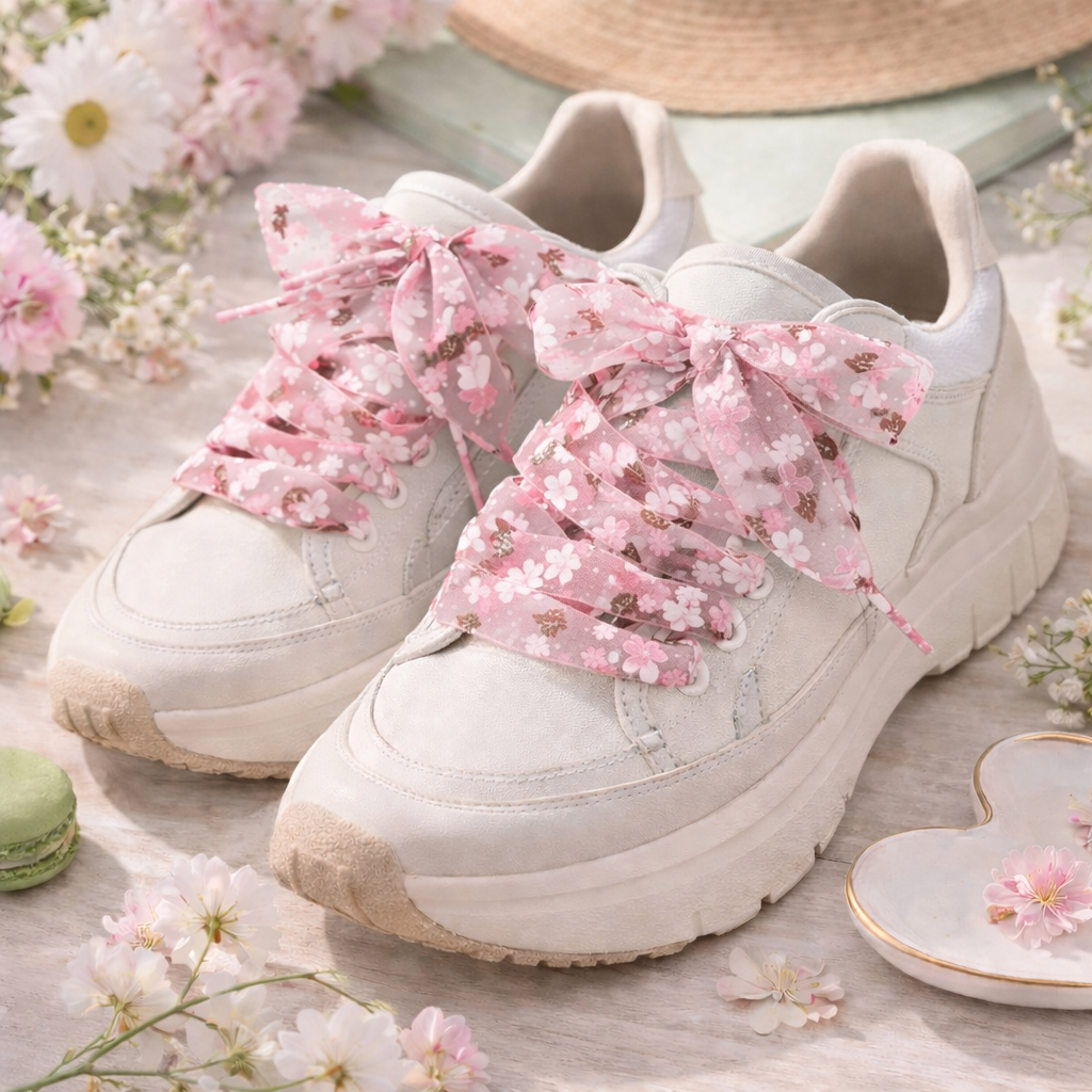 (1 paire) 120cm de lacets en organza Lacets de chaussures mode motif fleurs - rose