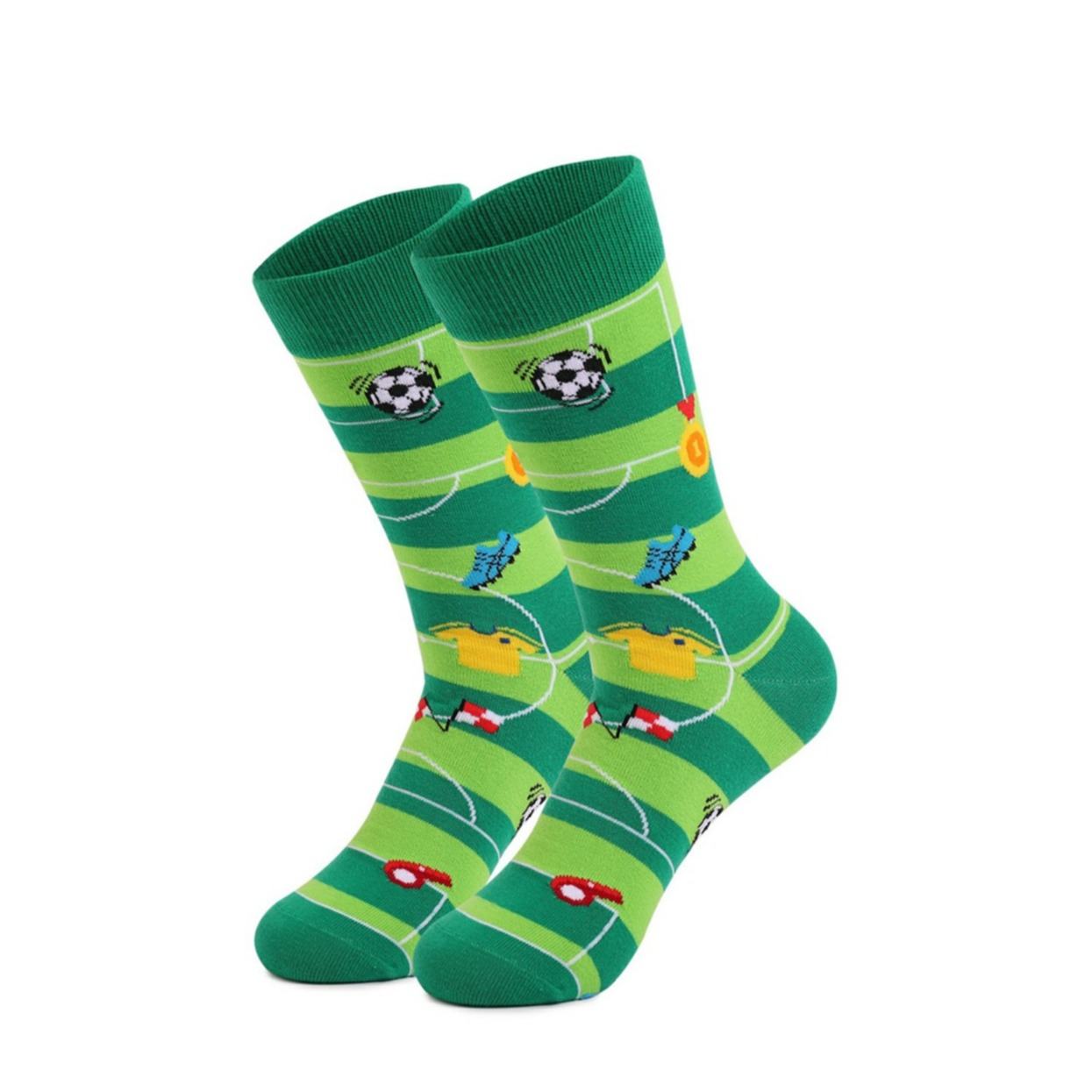 (1 paire) chaussettes en coton pour hommes motif football bas fashion (One Size) - vert