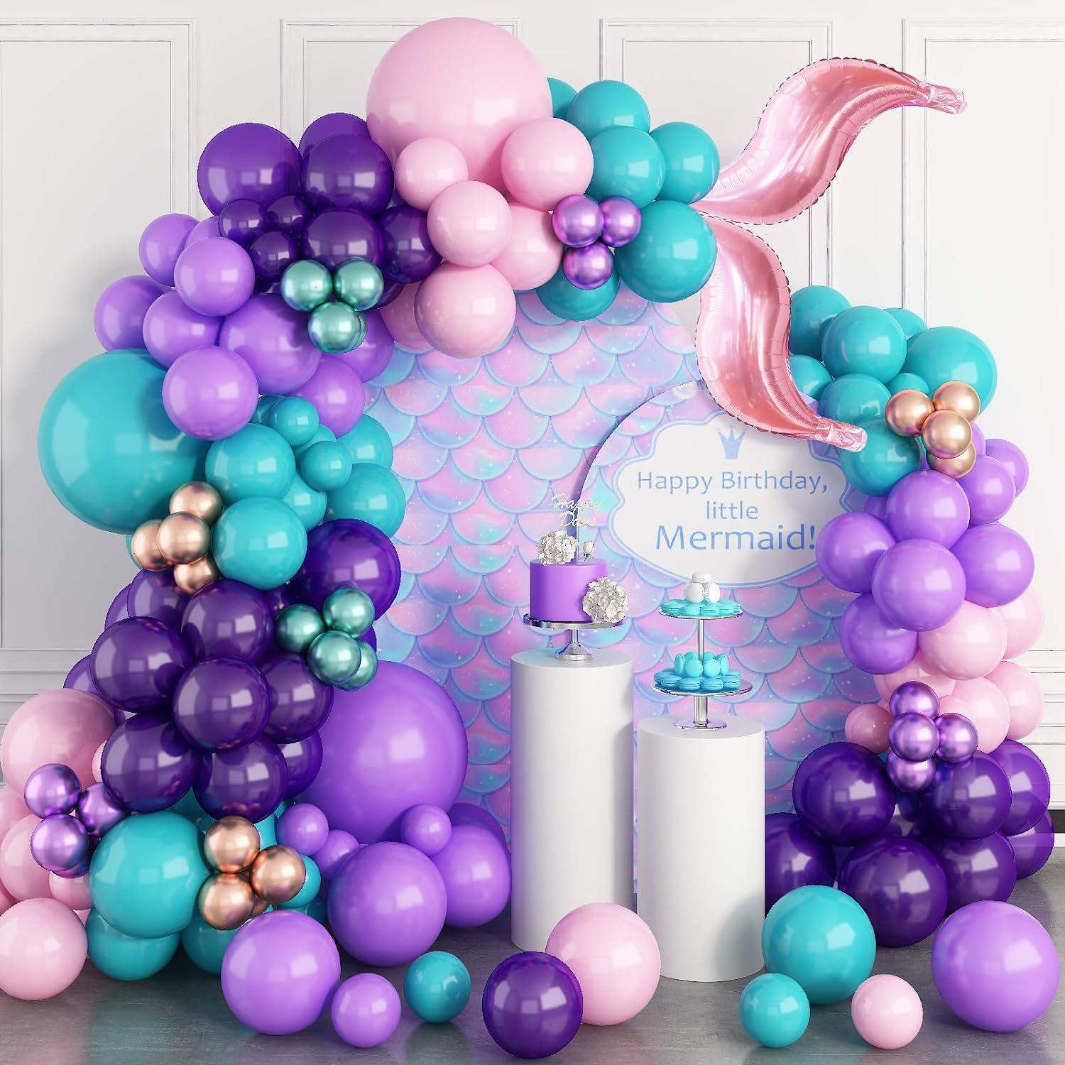 (108 pcs. Set) Enfants PARTY Décoration Films Ballons Sirène Latex Ballons Métalliques - Rose / Turquoise / Violet