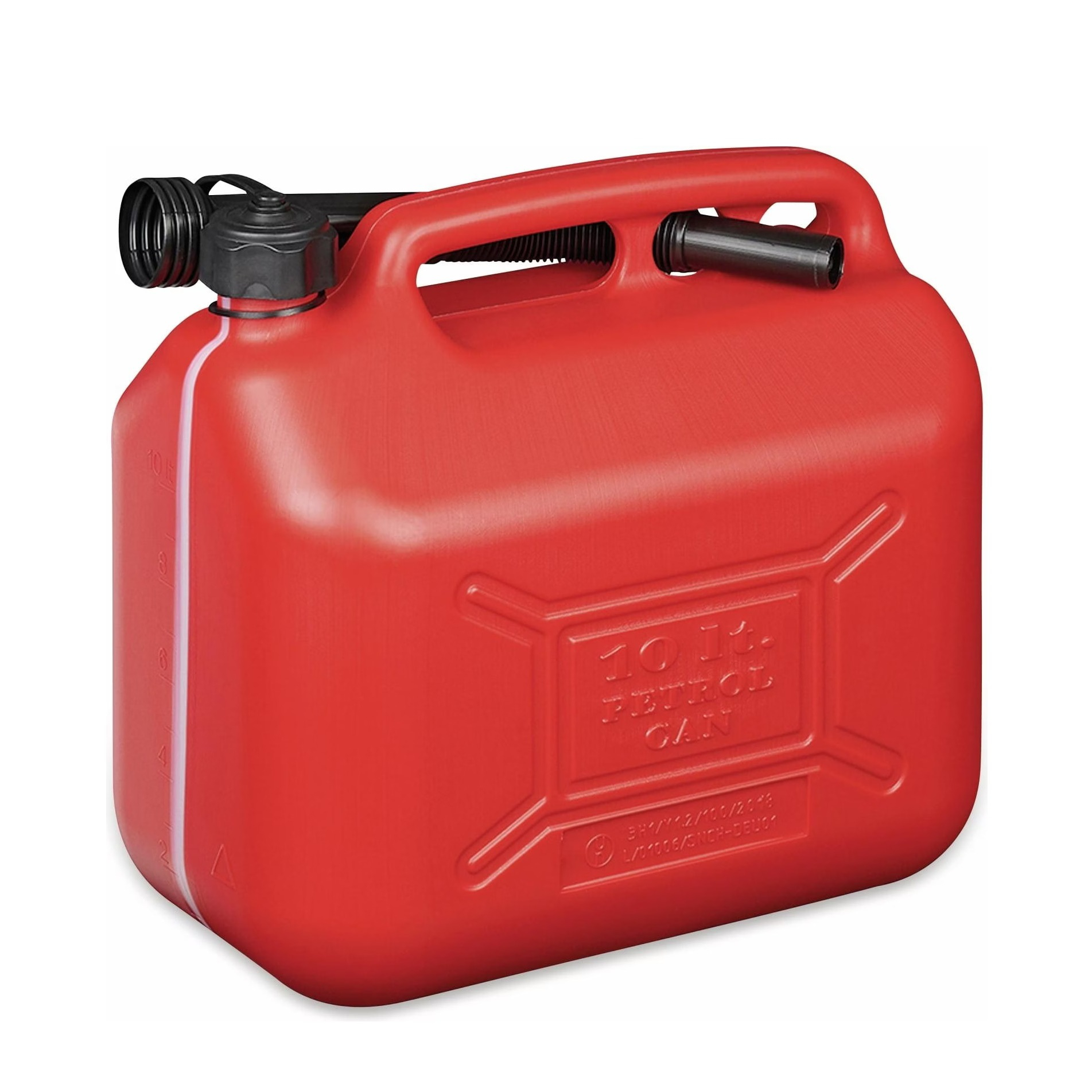Ce bidon de 10 litres est conçu exactement pour ce dont tu as besoin, un transport sûr et une manipulation facile. Grâce au bec verseur intégré, tu peux remplir le carburant proprement et sans faire de taches. L'indicateur de niveau te montre à tout moment combien il en reste, plus de devinettes.